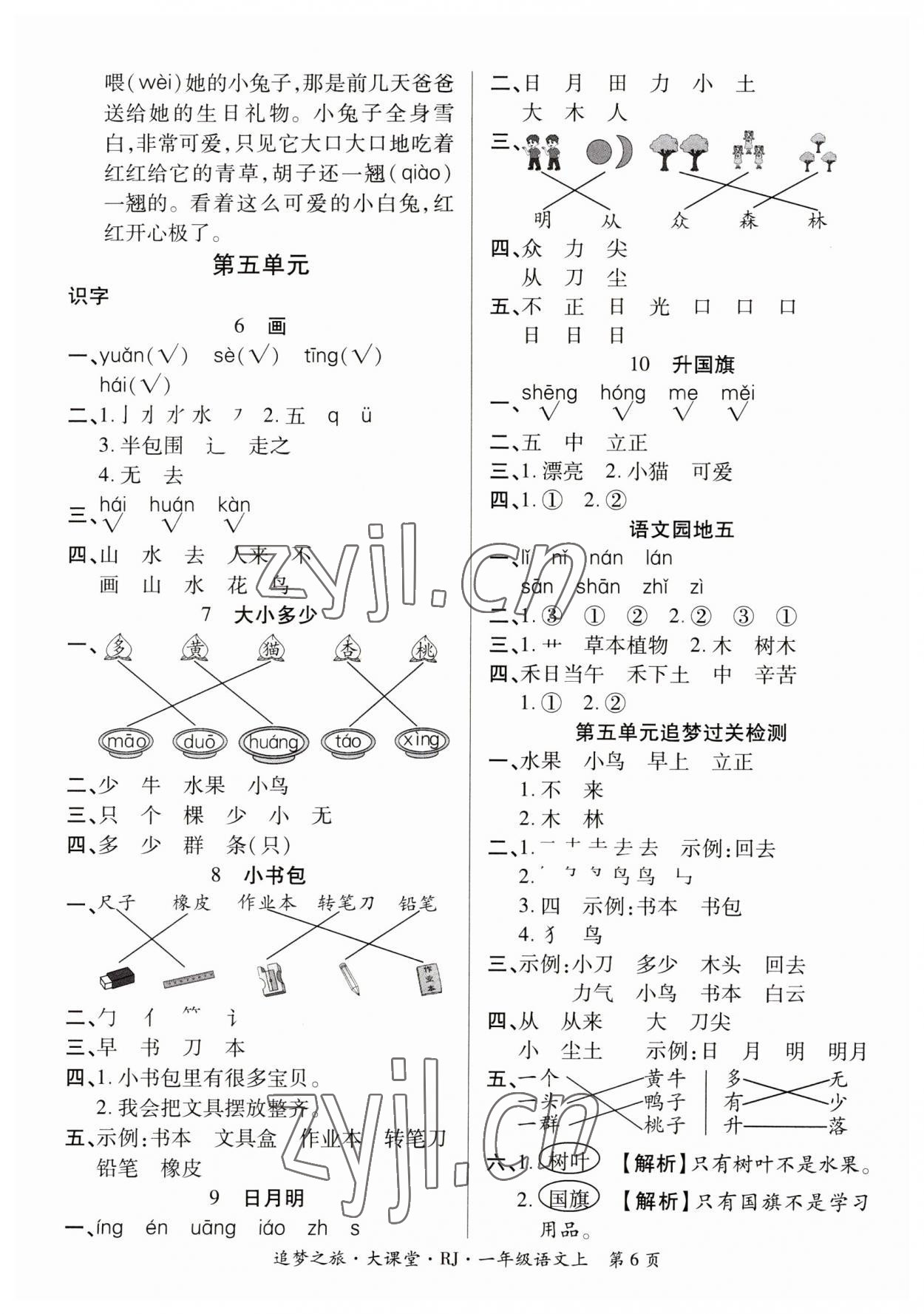 注:目前有些书本章节名称可能整理的还不是很完善,但都是按照顺序排列的,请同学们按照顺序仔细查找。练习册 2023年追梦之旅大课堂一年级语文上册人教版河南专版 答案主要是用来给同学们做完题方便对答案用的,请勿直接抄袭。