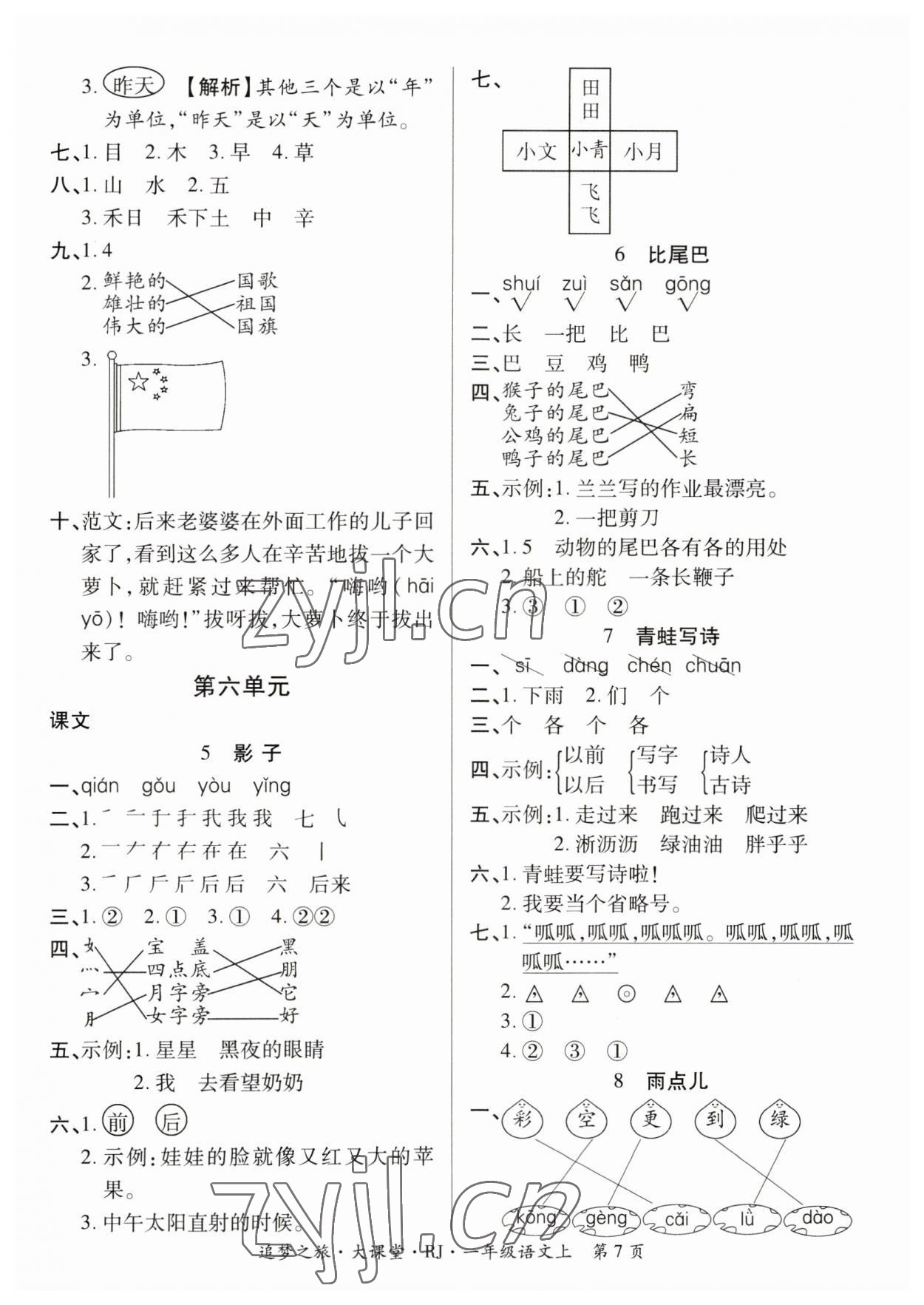 注:目前有些书本章节名称可能整理的还不是很完善,但都是按照顺序排列的,请同学们按照顺序仔细查找。练习册 2023年追梦之旅大课堂一年级语文上册人教版河南专版 答案主要是用来给同学们做完题方便对答案用的,请勿直接抄袭。