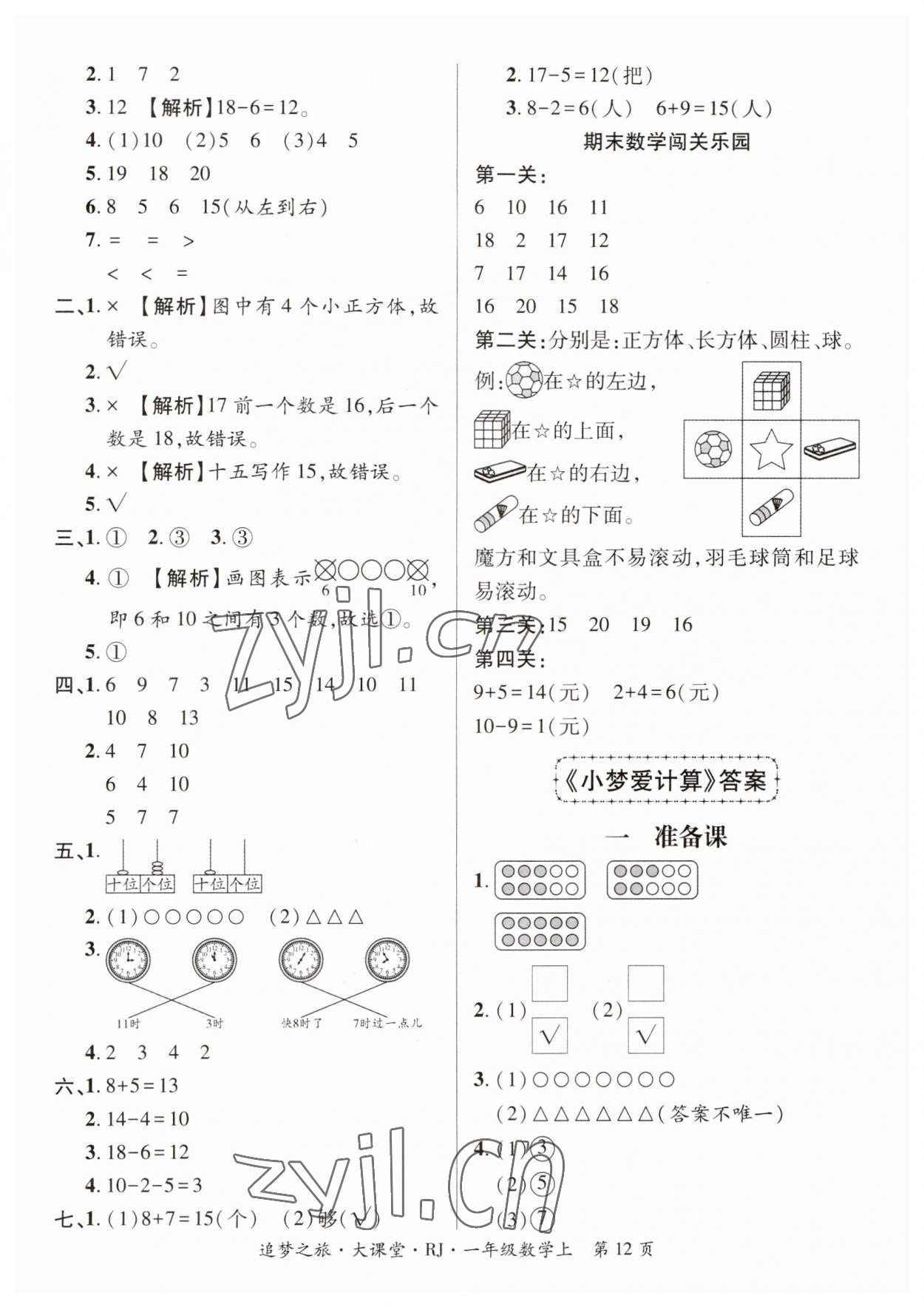 注:目前有些书本章节名称可能整理的还不是很完善,但都是按照顺序排列的,请同学们按照顺序仔细查找。练习册 2023年追梦之旅大课堂一年级数学上册人教版河南专版 答案主要是用来给同学们做完题方便对答案用的,请勿直接抄袭。