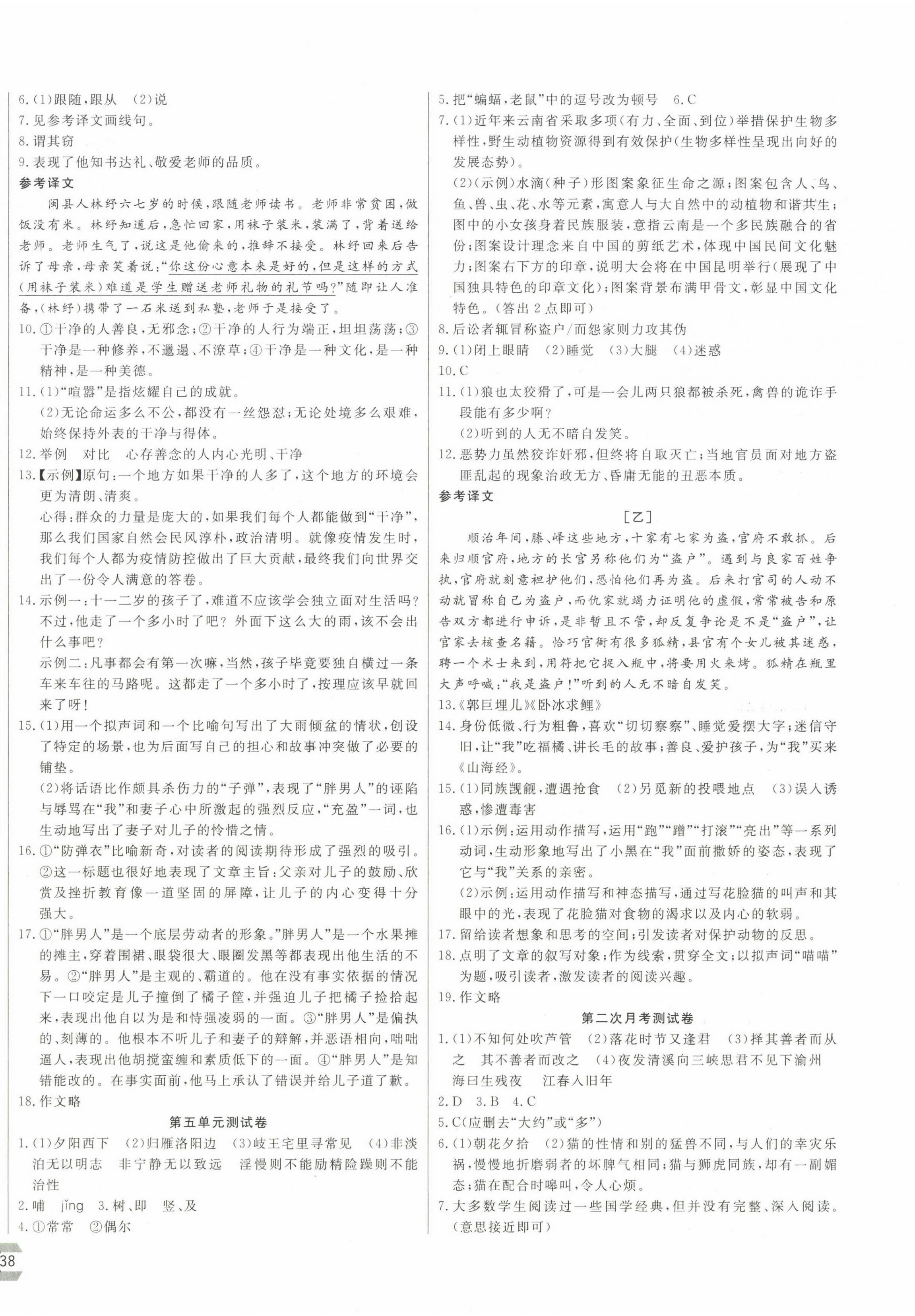 注:目前有些书本章节名称可能整理的还不是很完善,但都是按照顺序排列的,请同学们按照顺序仔细查找。练习册 2023年新思维名师培优卷七年级语文上册人教版 答案主要是用来给同学们做完题方便对答案用的,请勿直接抄袭。
