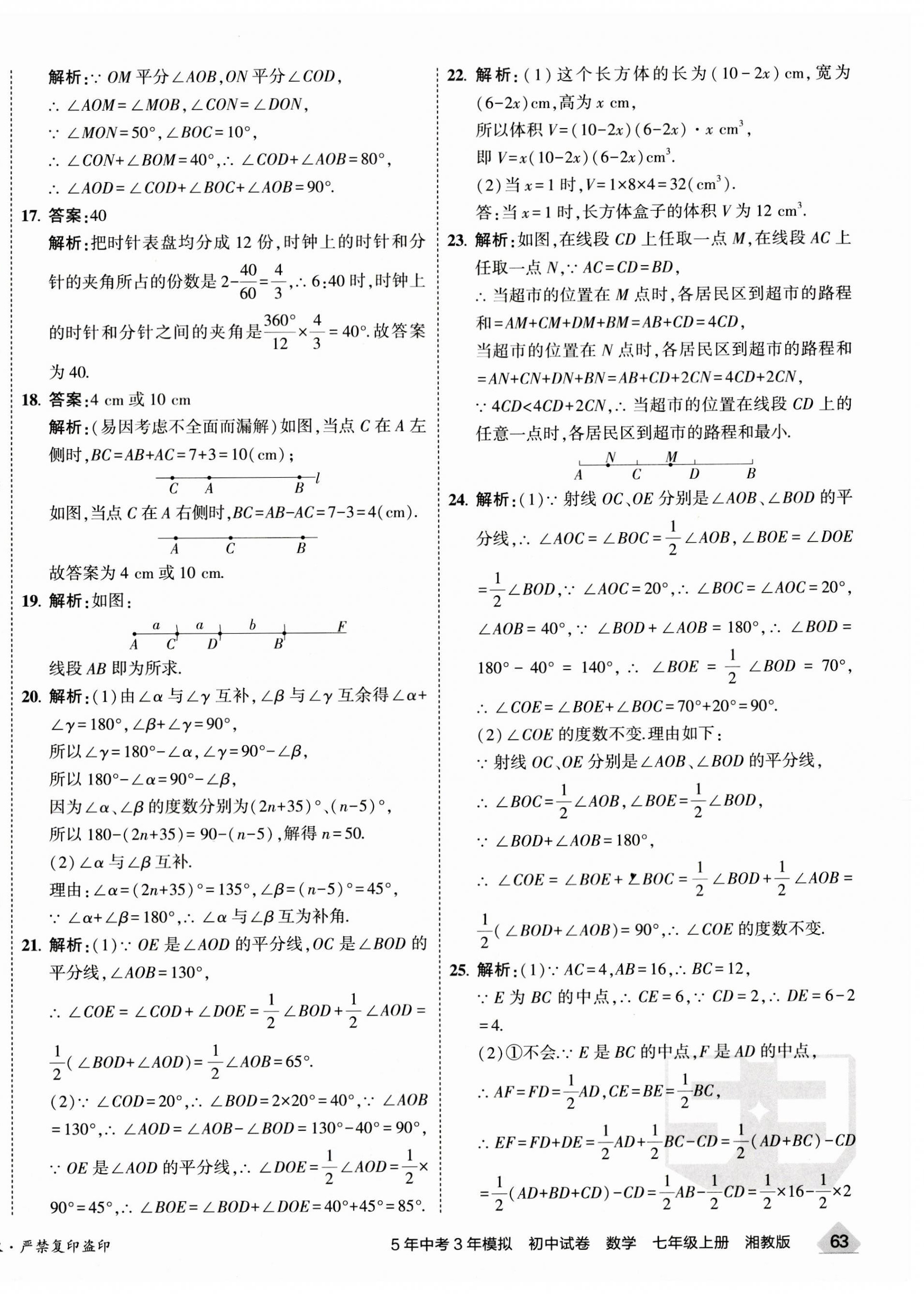 注:目前有些书本章节名称可能整理的还不是很完善,但都是按照顺序排列的,请同学们按照顺序仔细查找。练习册 2023年5年中考3年模拟初中试卷七年级数学上册湘教版 答案主要是用来给同学们做完题方便对答案用的,请勿直接抄袭。