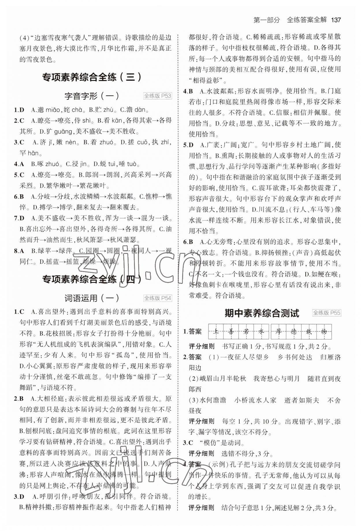 注:目前有些书本章节名称可能整理的还不是很完善,但都是按照顺序排列的,请同学们按照顺序仔细查找。练习册 2023年5年中考3年模拟七年级语文上册人教版山西专版 答案主要是用来给同学们做完题方便对答案用的,请勿直接抄袭。