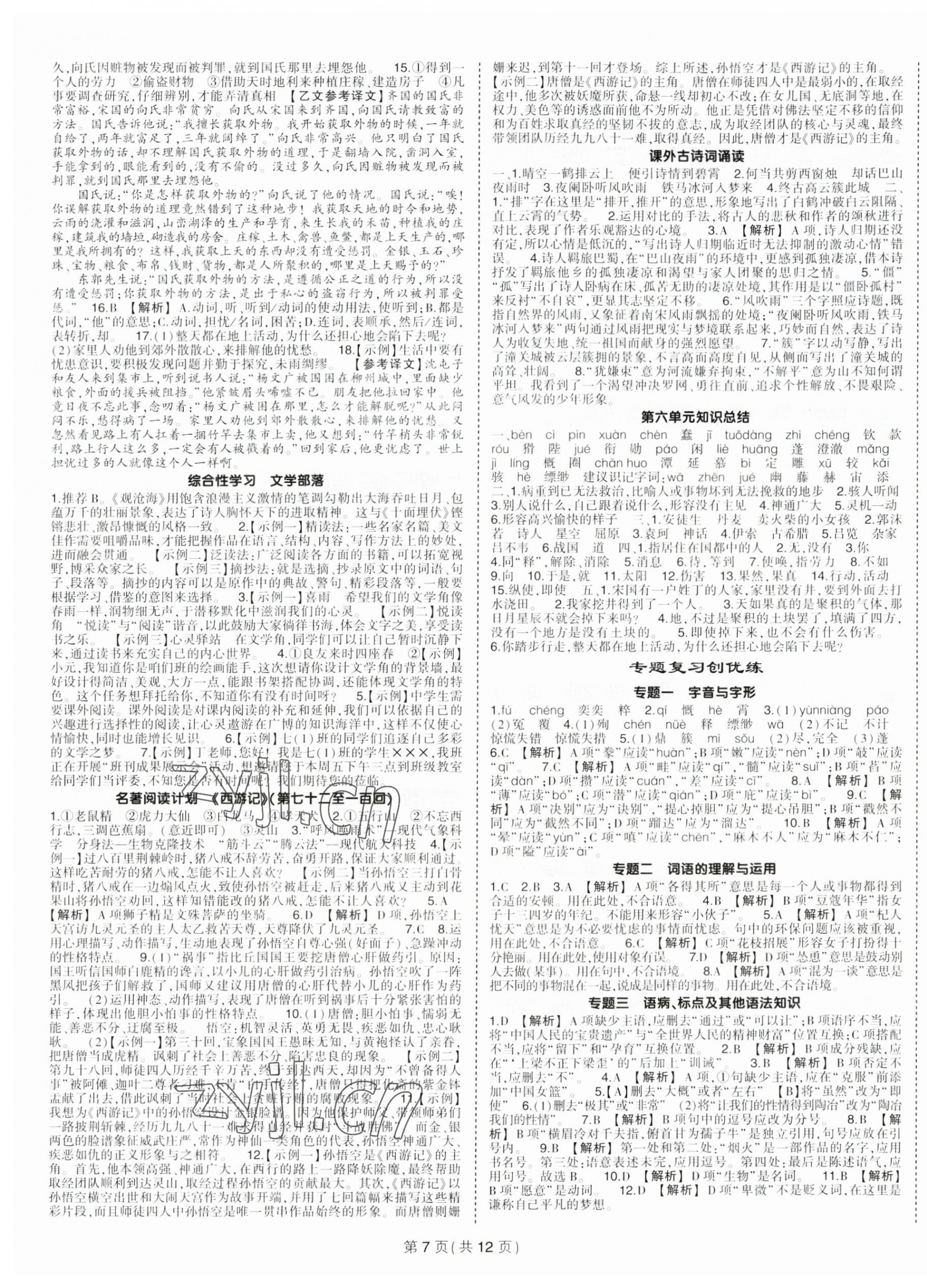 注:目前有些书本章节名称可能整理的还不是很完善,但都是按照顺序排列的,请同学们按照顺序仔细查找。练习册 2023年状元成才路创优作业七年级语文上册人教版 答案主要是用来给同学们做完题方便对答案用的,请勿直接抄袭。