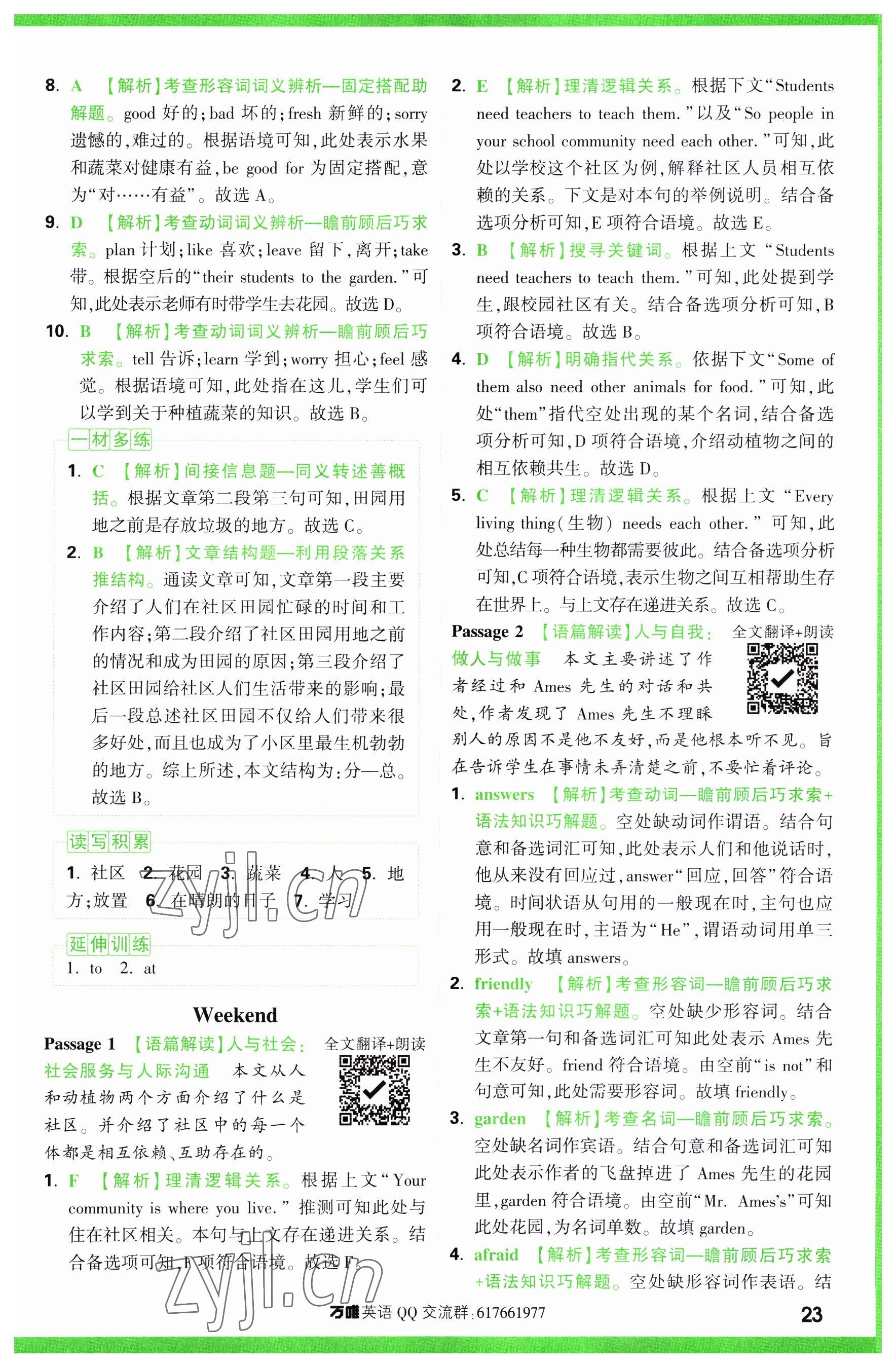 注:目前有些书本章节名称可能整理的还不是很完善,但都是按照顺序排列的,请同学们按照顺序仔细查找。练习册 2023年万唯中考完形填空阅读理解七年级英语 答案主要是用来给同学们做完题方便对答案用的,请勿直接抄袭。