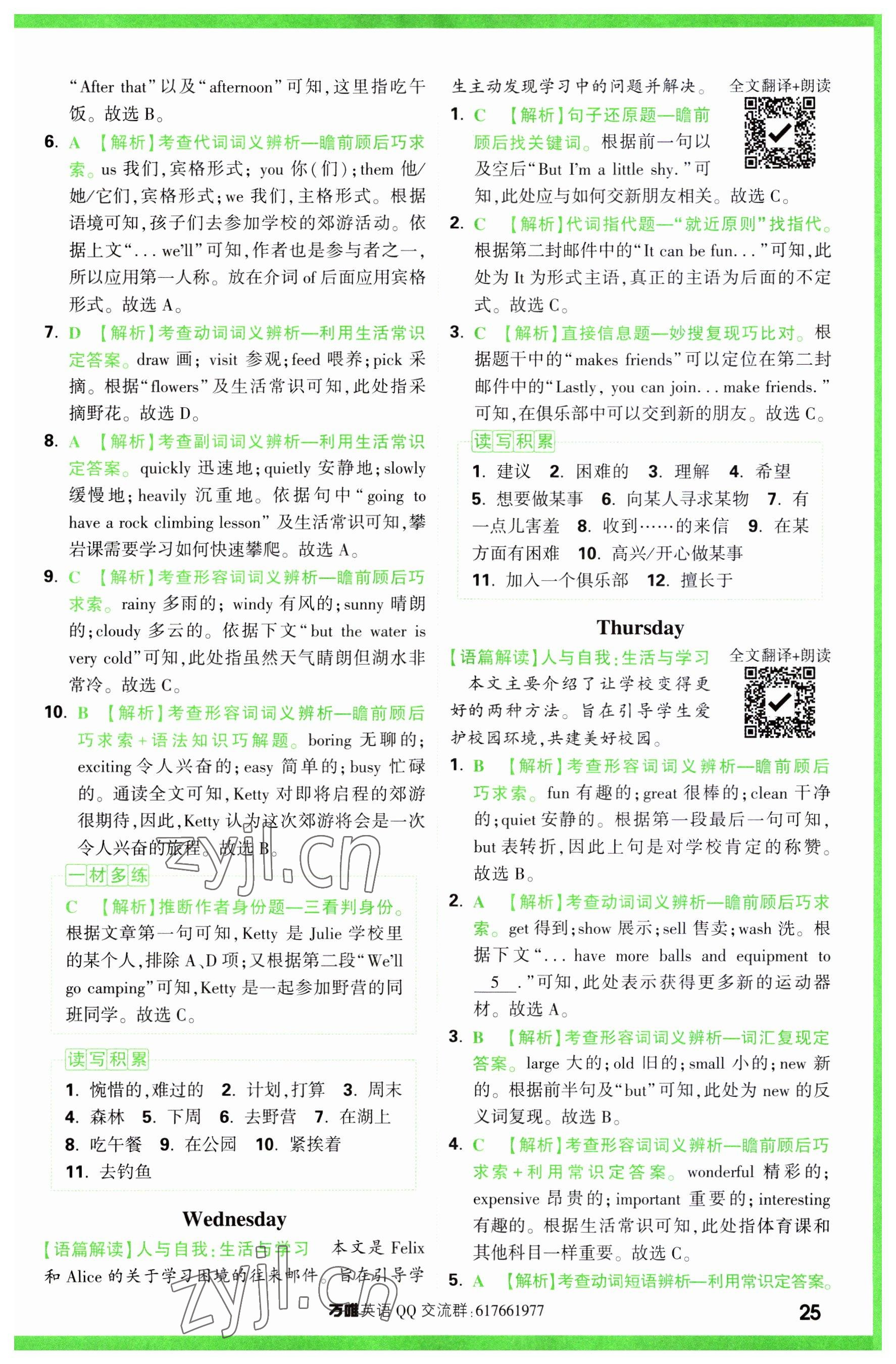 注:目前有些书本章节名称可能整理的还不是很完善,但都是按照顺序排列的,请同学们按照顺序仔细查找。练习册 2023年万唯中考完形填空阅读理解七年级英语 答案主要是用来给同学们做完题方便对答案用的,请勿直接抄袭。