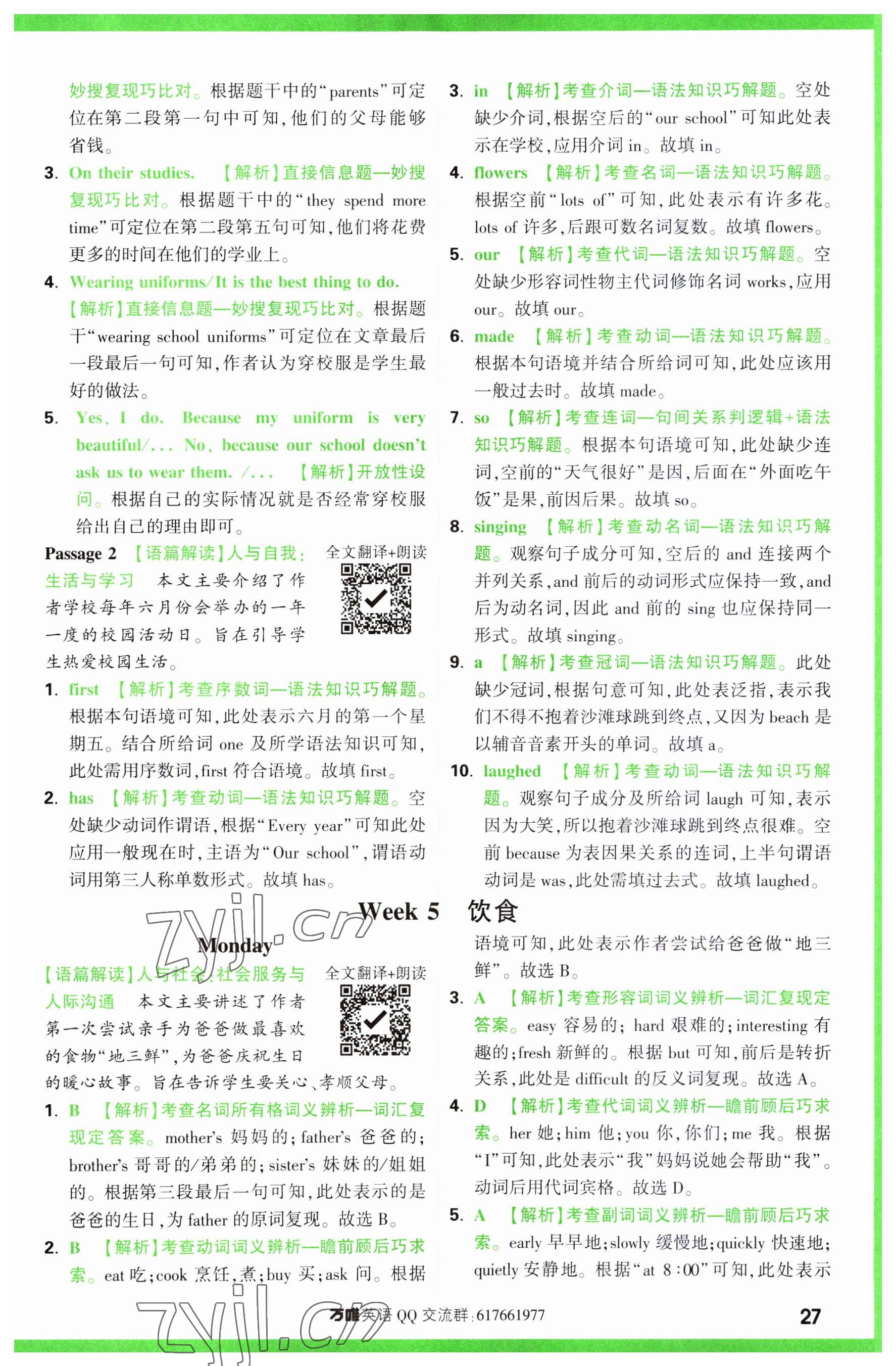 注:目前有些书本章节名称可能整理的还不是很完善,但都是按照顺序排列的,请同学们按照顺序仔细查找。练习册 2023年万唯中考完形填空阅读理解七年级英语 答案主要是用来给同学们做完题方便对答案用的,请勿直接抄袭。