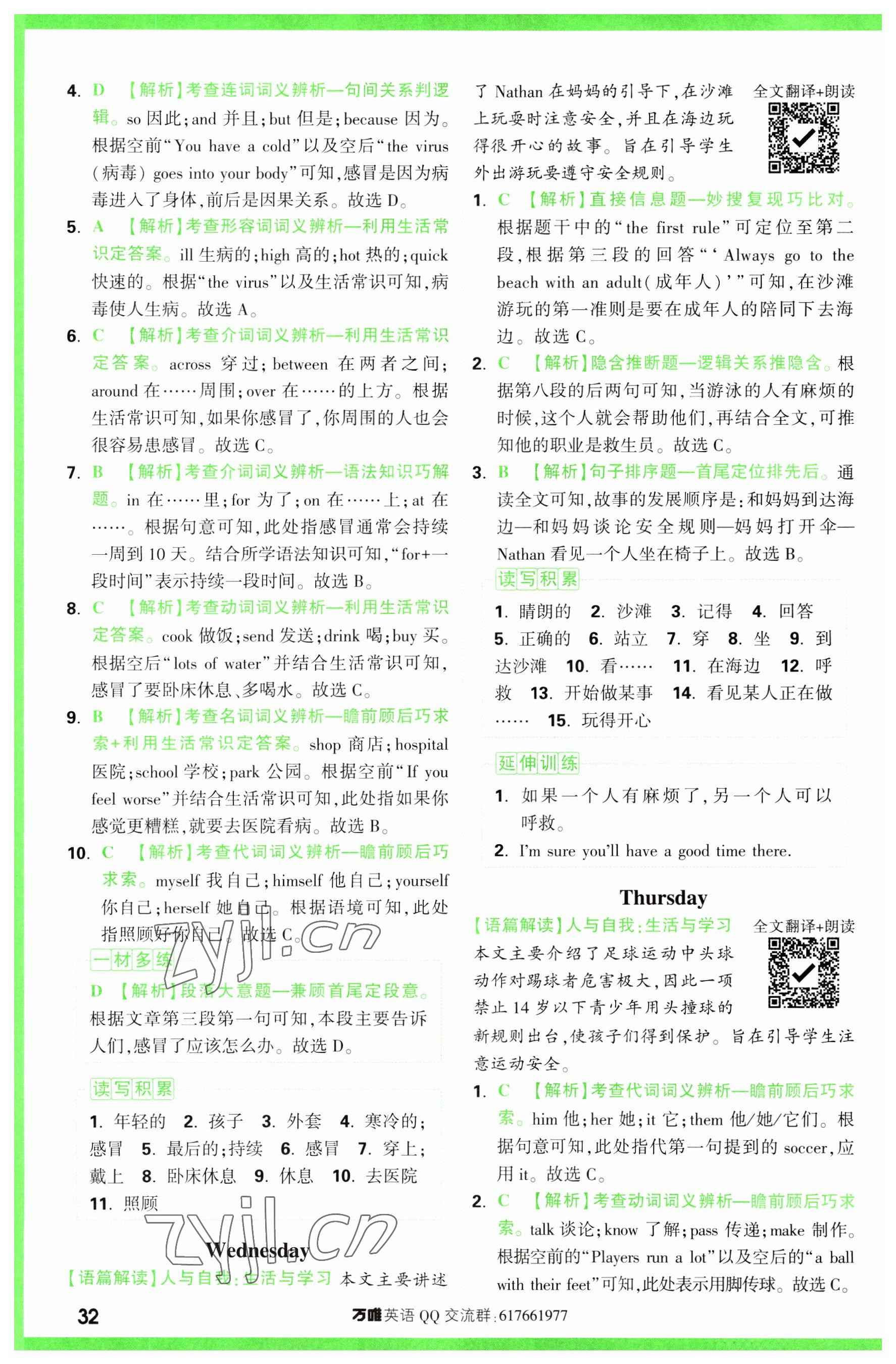 注:目前有些书本章节名称可能整理的还不是很完善,但都是按照顺序排列的,请同学们按照顺序仔细查找。练习册 2023年万唯中考完形填空阅读理解七年级英语 答案主要是用来给同学们做完题方便对答案用的,请勿直接抄袭。