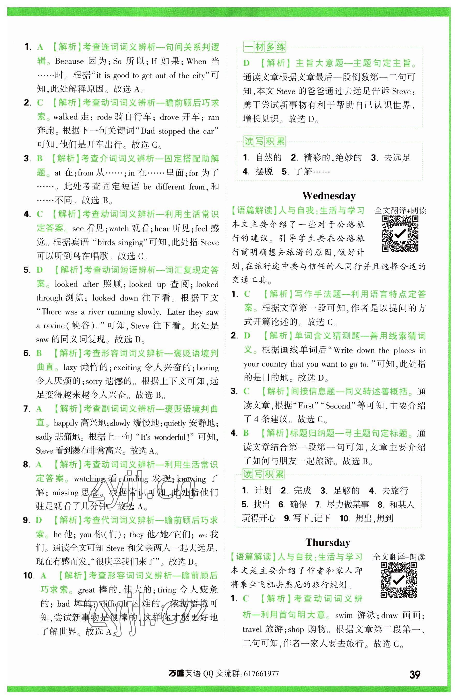 注:目前有些书本章节名称可能整理的还不是很完善,但都是按照顺序排列的,请同学们按照顺序仔细查找。练习册 2023年万唯中考完形填空阅读理解七年级英语 答案主要是用来给同学们做完题方便对答案用的,请勿直接抄袭。