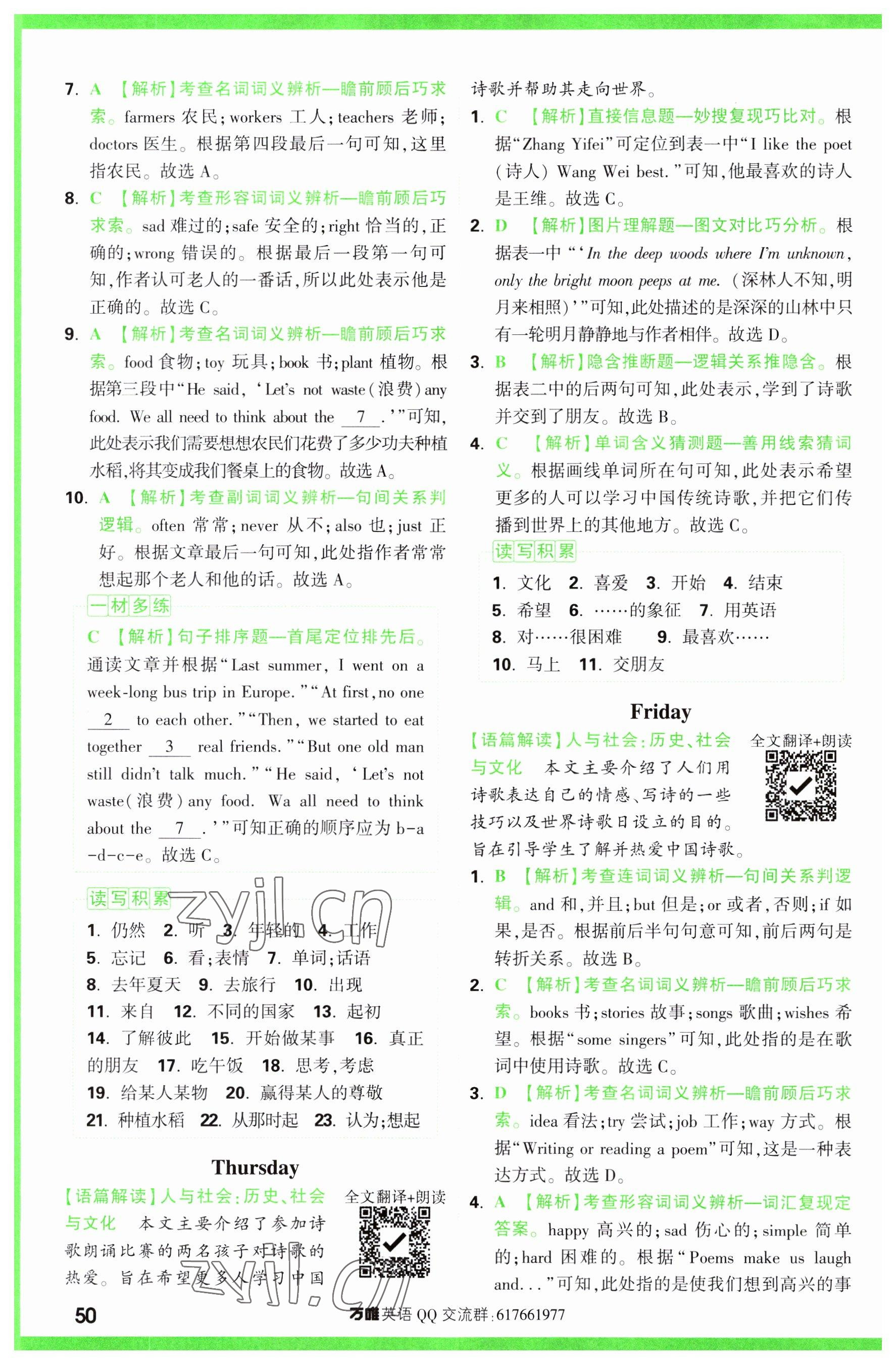 注:目前有些书本章节名称可能整理的还不是很完善,但都是按照顺序排列的,请同学们按照顺序仔细查找。练习册 2023年万唯中考完形填空阅读理解七年级英语 答案主要是用来给同学们做完题方便对答案用的,请勿直接抄袭。