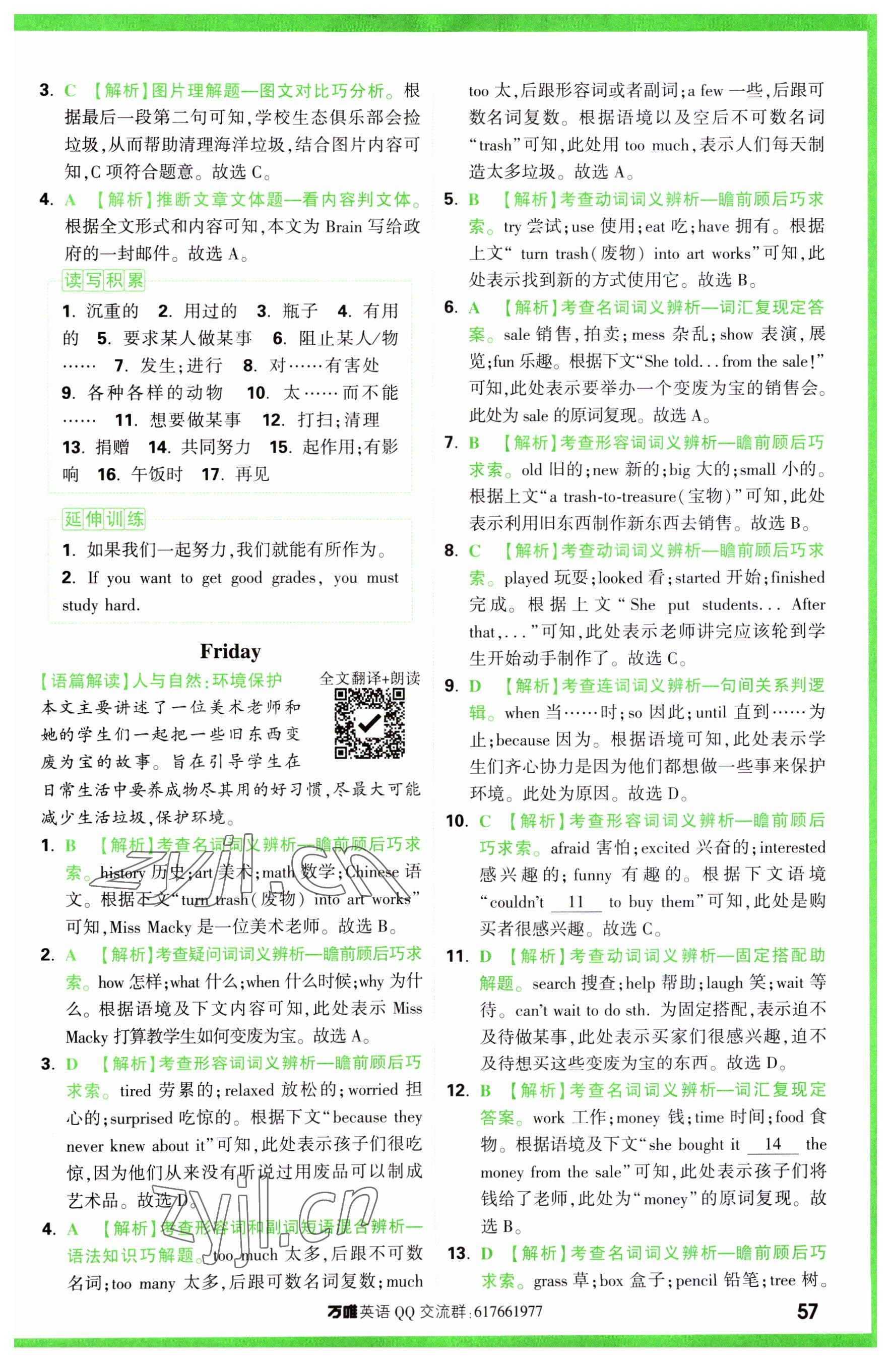 注:目前有些书本章节名称可能整理的还不是很完善,但都是按照顺序排列的,请同学们按照顺序仔细查找。练习册 2023年万唯中考完形填空阅读理解七年级英语 答案主要是用来给同学们做完题方便对答案用的,请勿直接抄袭。