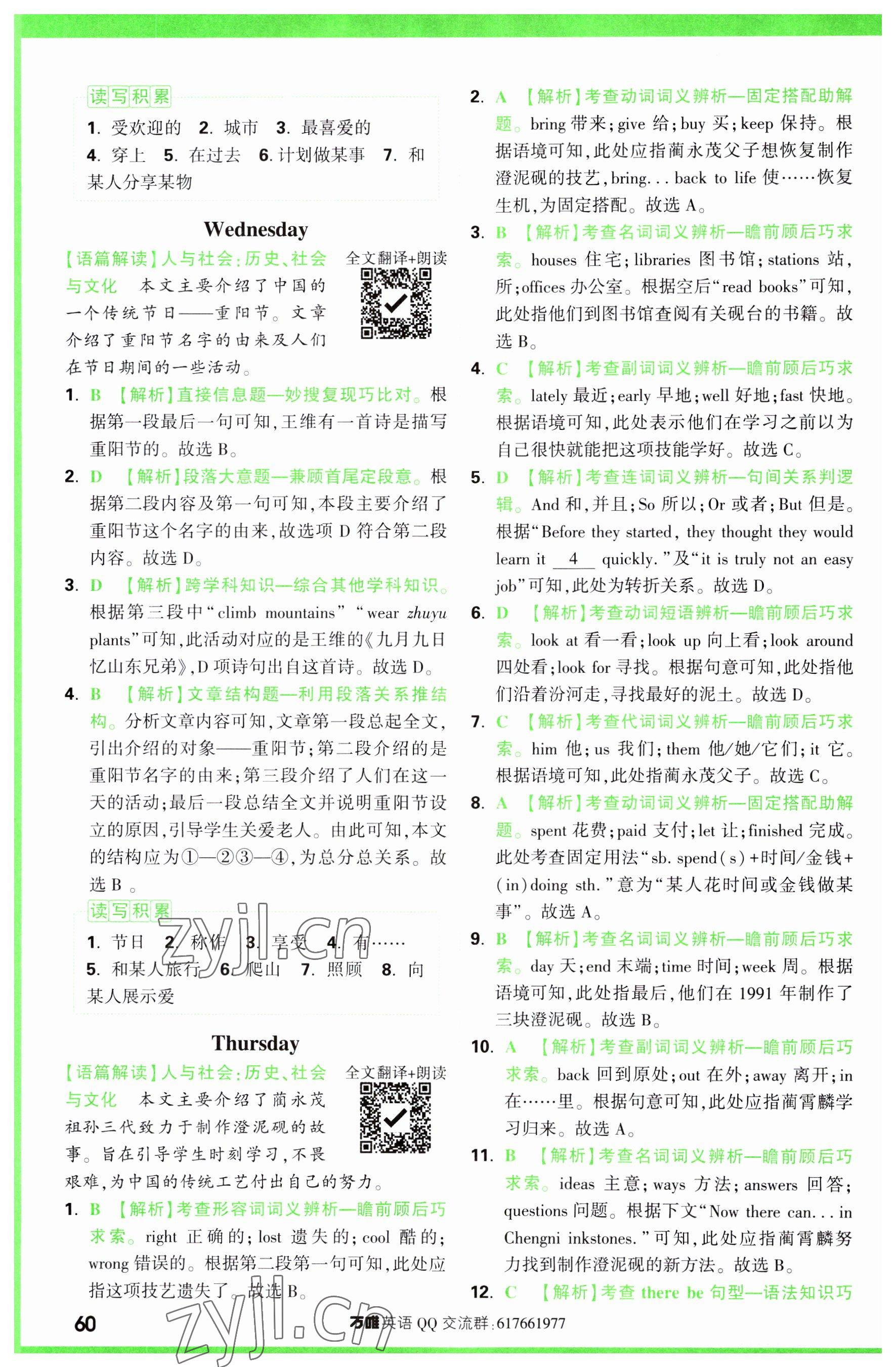注:目前有些书本章节名称可能整理的还不是很完善,但都是按照顺序排列的,请同学们按照顺序仔细查找。练习册 2023年万唯中考完形填空阅读理解七年级英语 答案主要是用来给同学们做完题方便对答案用的,请勿直接抄袭。