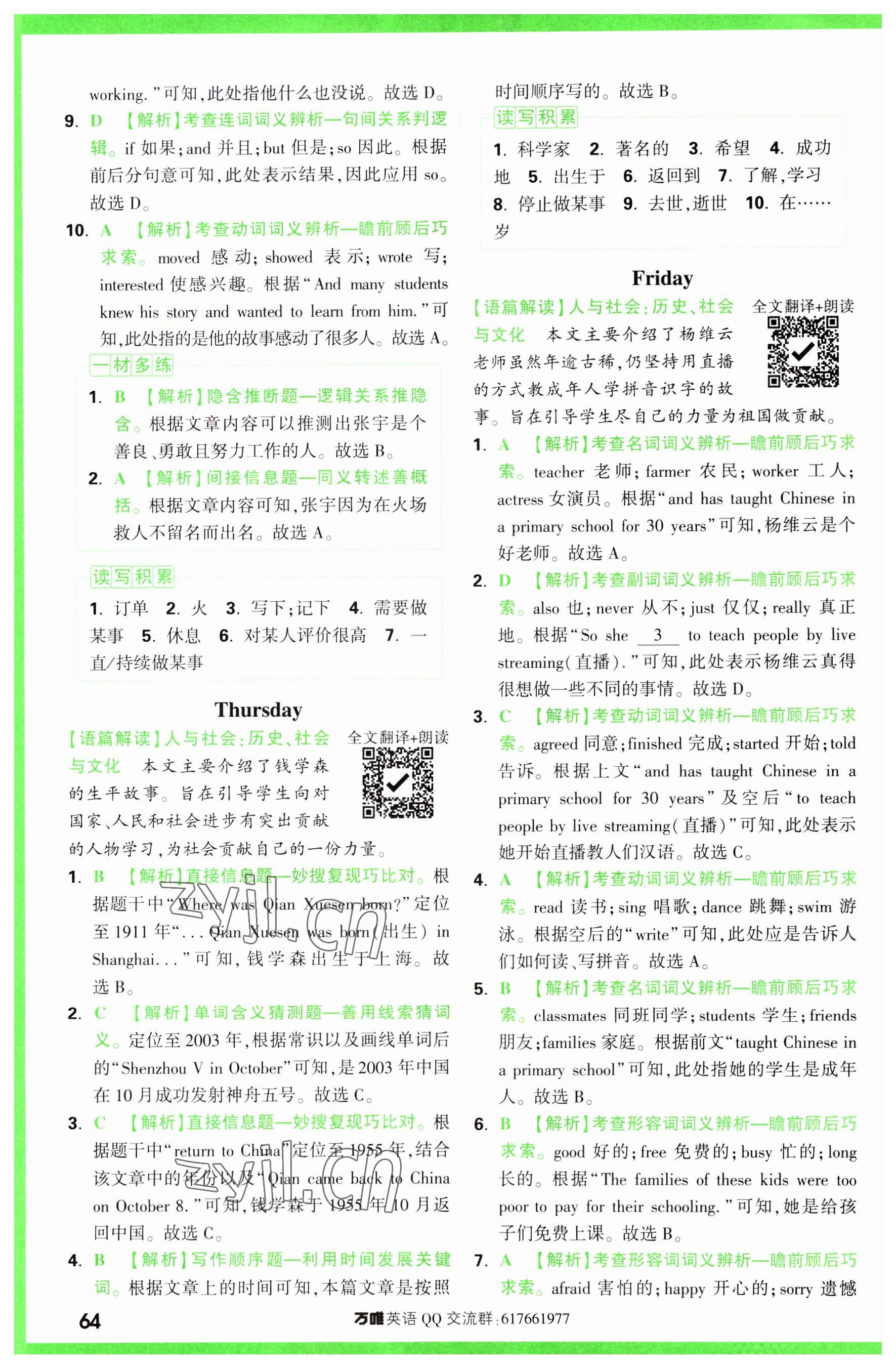 注:目前有些书本章节名称可能整理的还不是很完善,但都是按照顺序排列的,请同学们按照顺序仔细查找。练习册 2023年万唯中考完形填空阅读理解七年级英语 答案主要是用来给同学们做完题方便对答案用的,请勿直接抄袭。