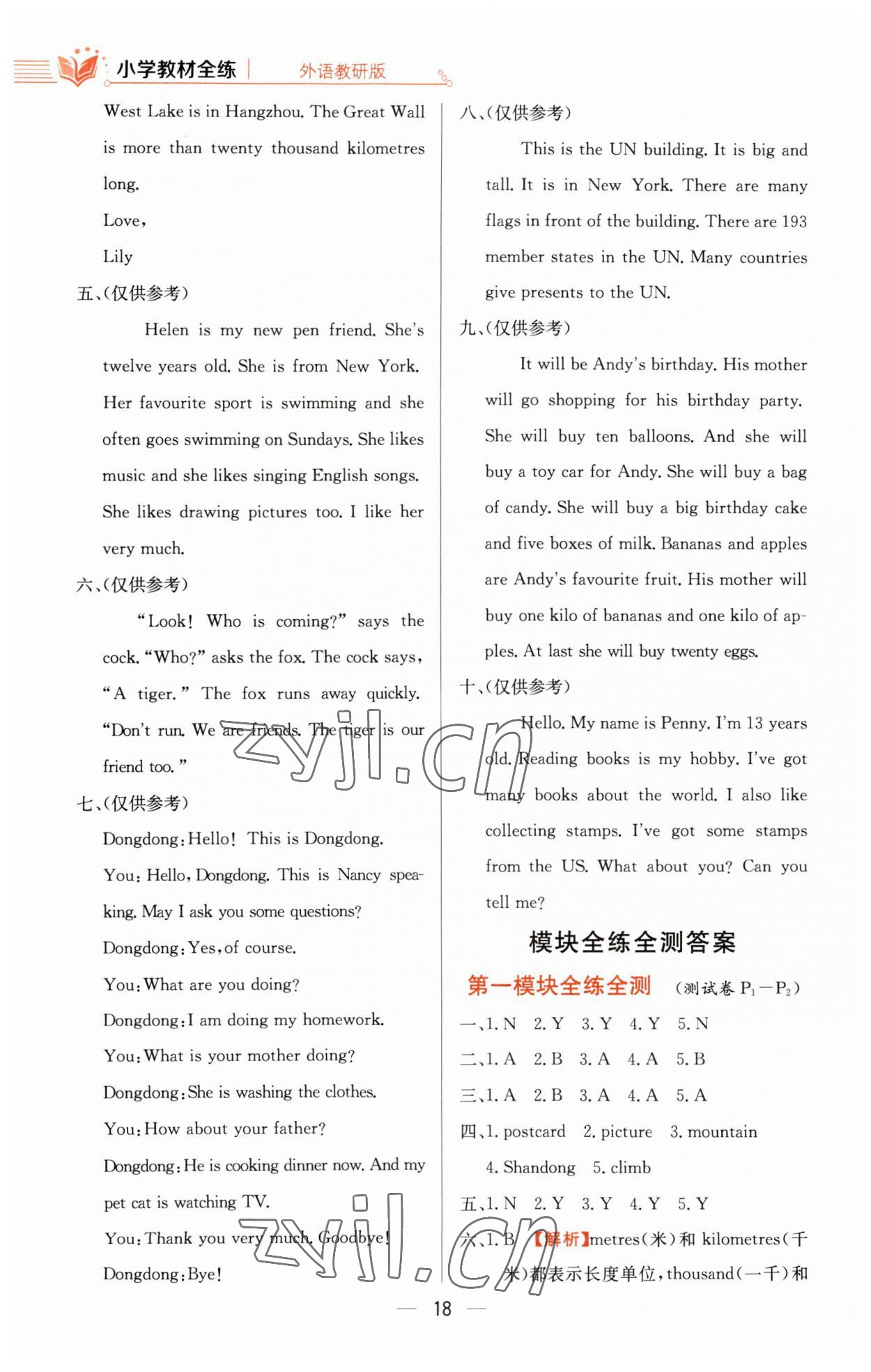 注:目前有些书本章节名称可能整理的还不是很完善,但都是按照顺序排列的,请同学们按照顺序仔细查找。练习册 2023年小学教材全练六年级英语上册外研版 答案主要是用来给同学们做完题方便对答案用的,请勿直接抄袭。
