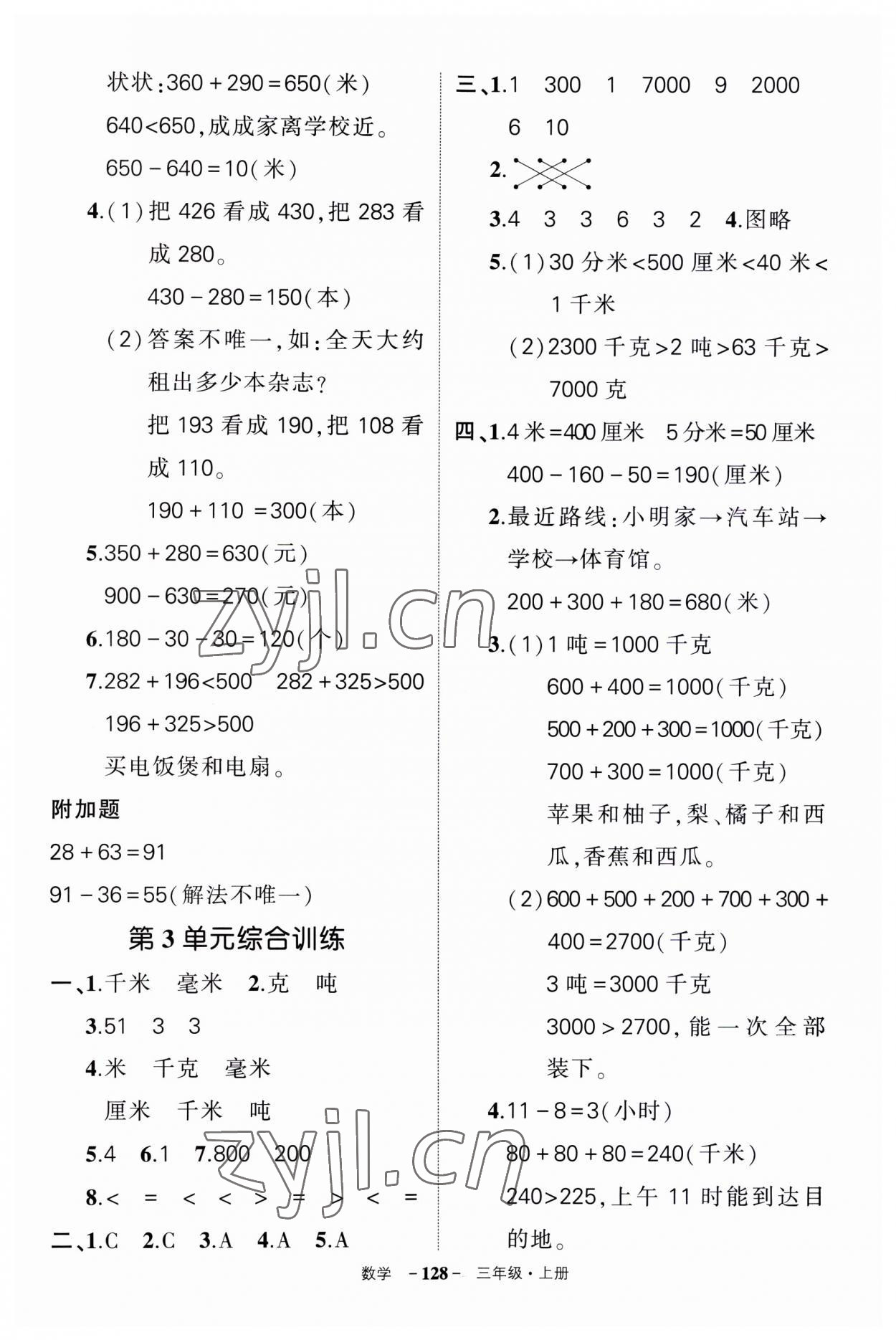 2023年状元成才路创优作业100分三年级数学上册人教版湖南专版