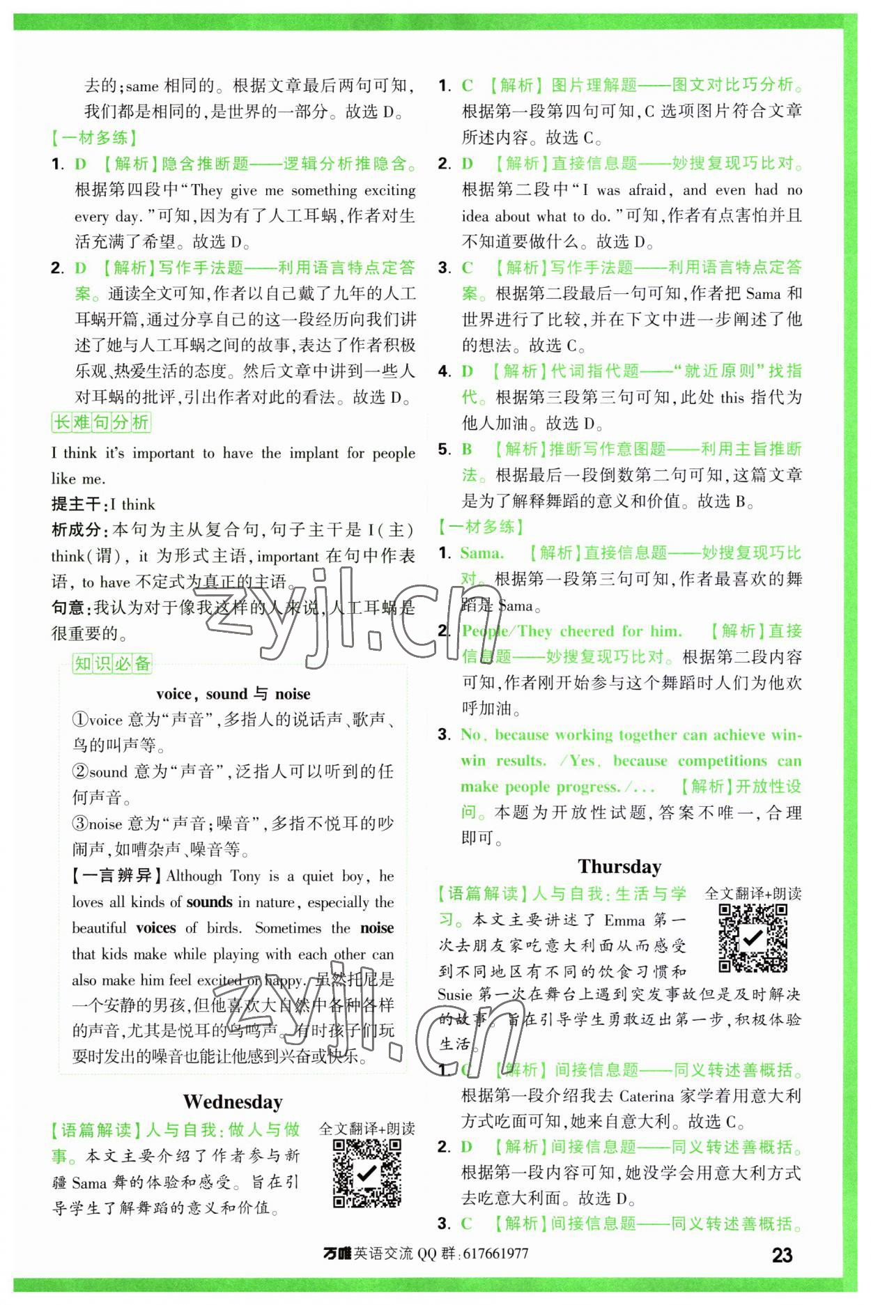 2023年万唯中考完形填空阅读理解八年级英语人教版