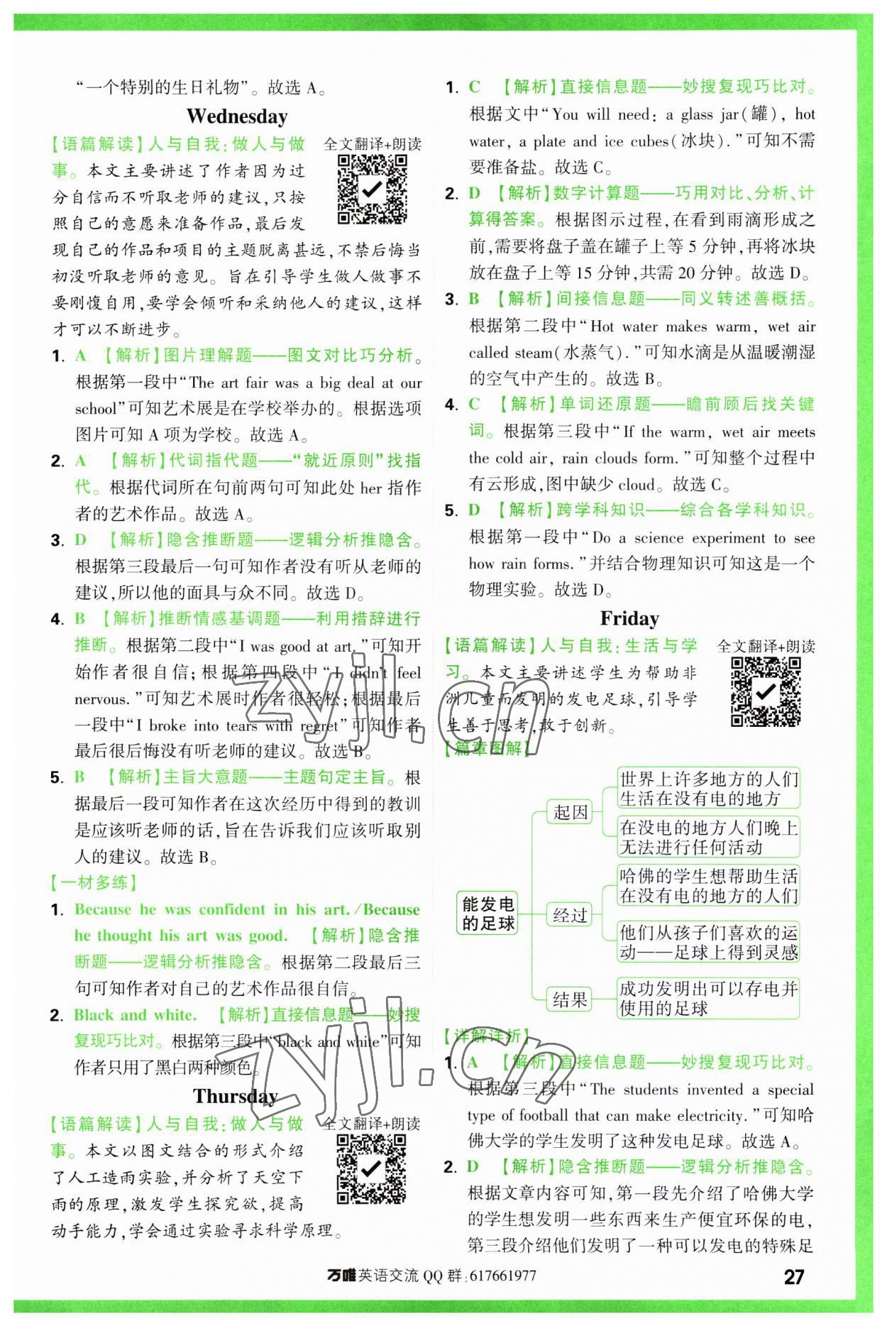 2023年万唯中考完形填空阅读理解八年级英语人教版