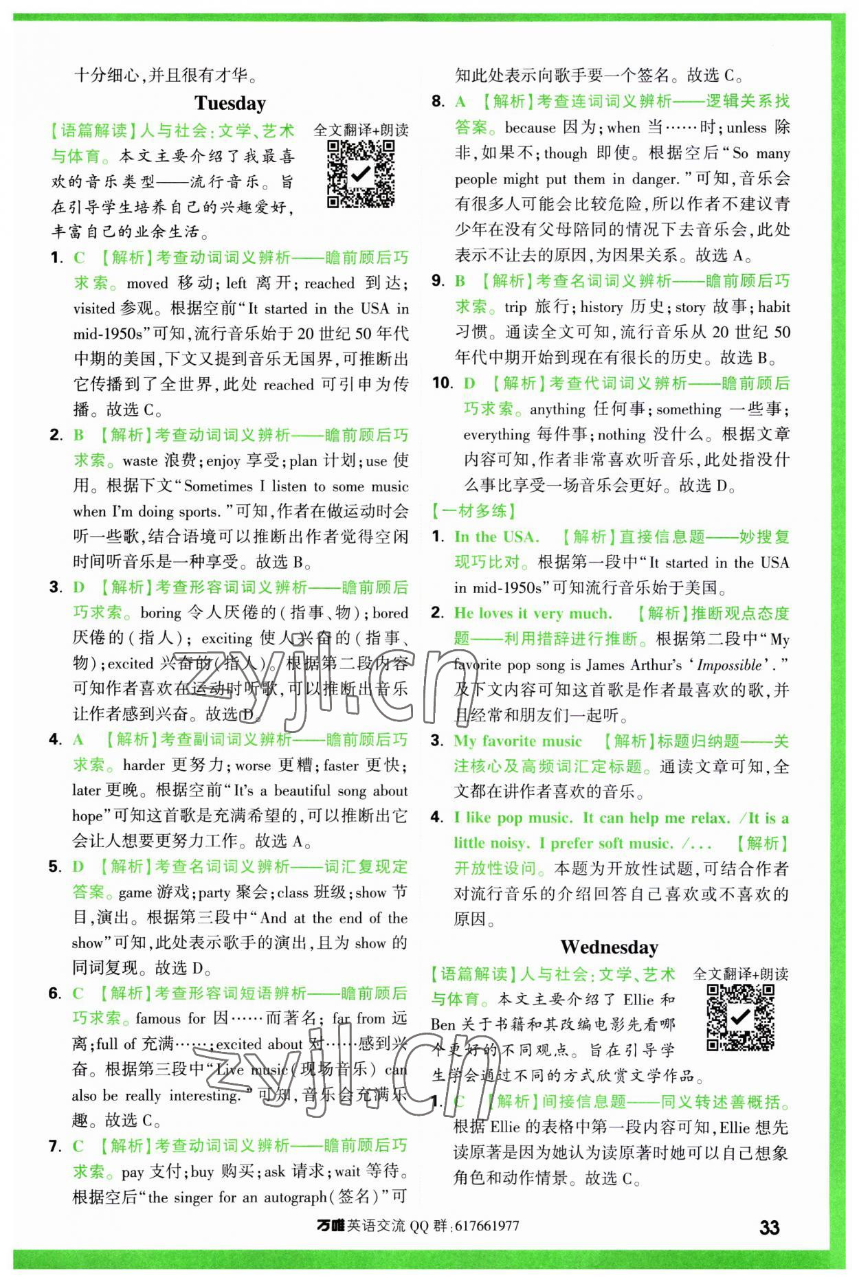 2023年万唯中考完形填空阅读理解八年级英语人教版