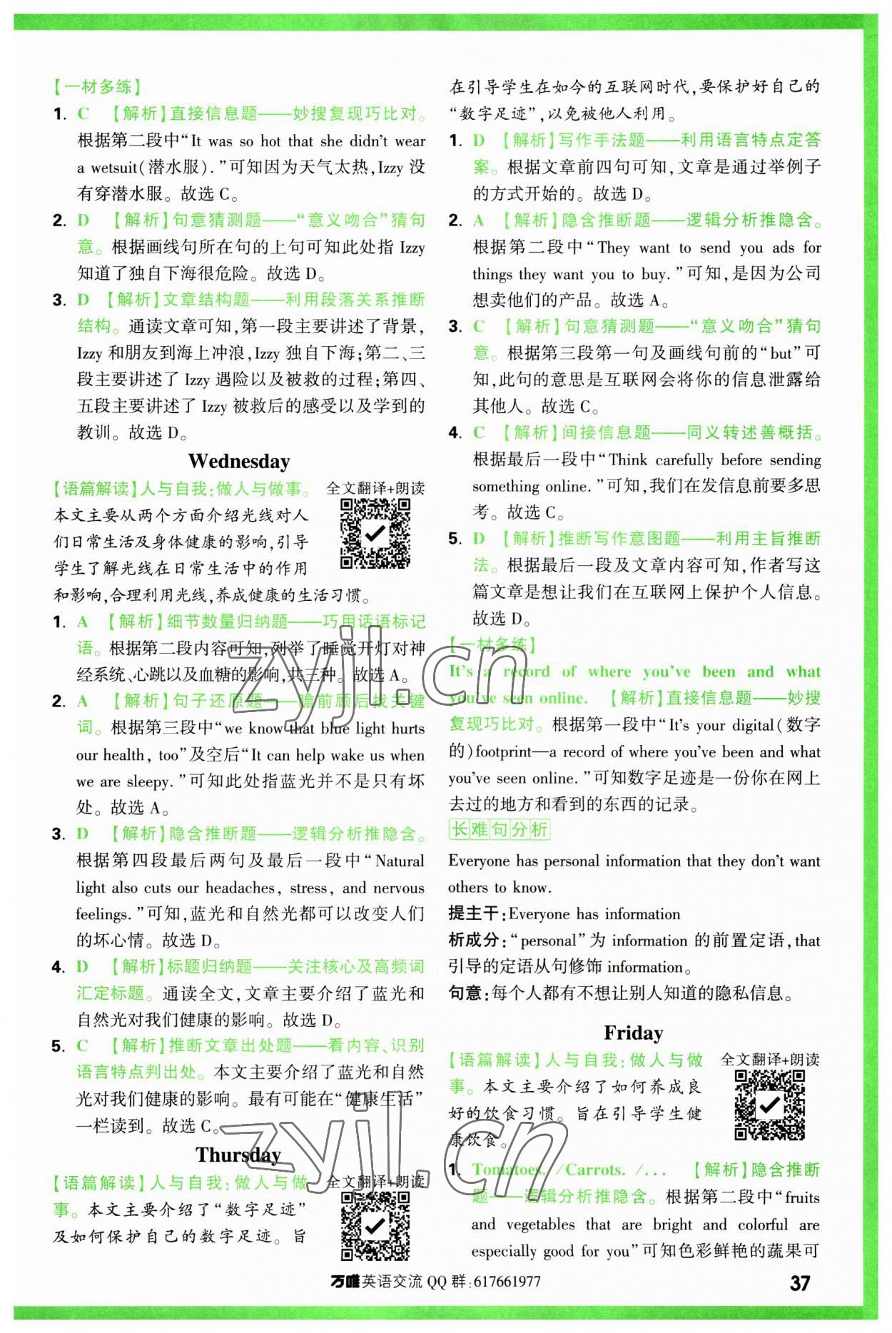 2023年万唯中考完形填空阅读理解八年级英语人教版