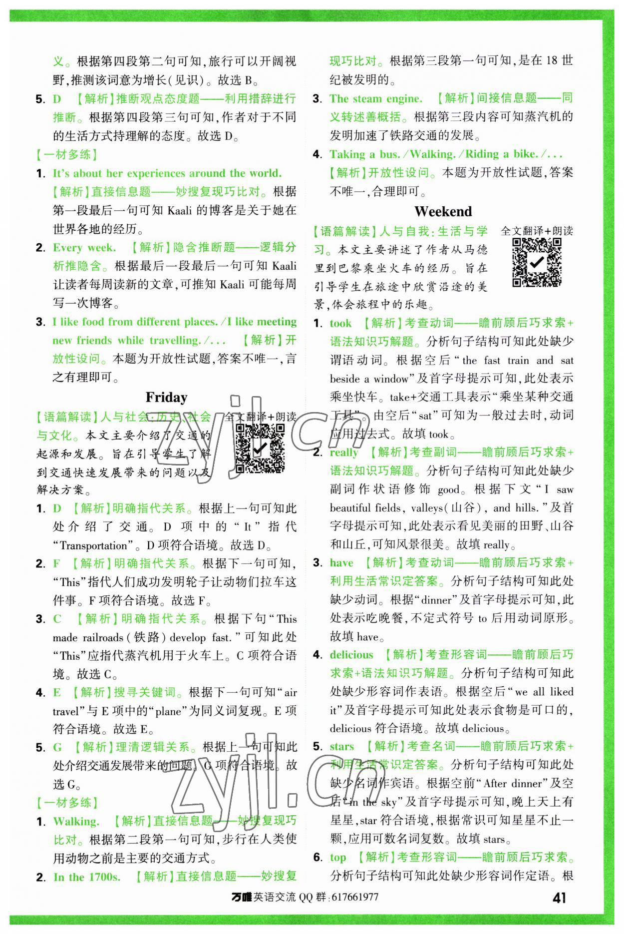 2023年万唯中考完形填空阅读理解八年级英语人教版