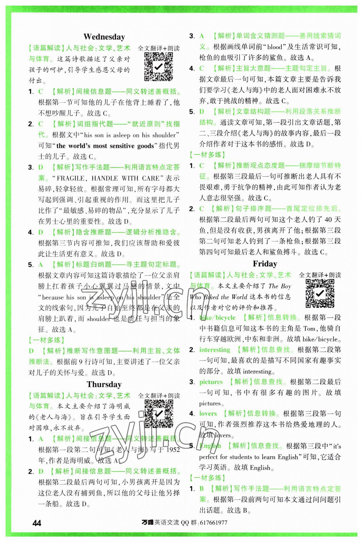 2023年万唯中考完形填空阅读理解八年级英语人教版