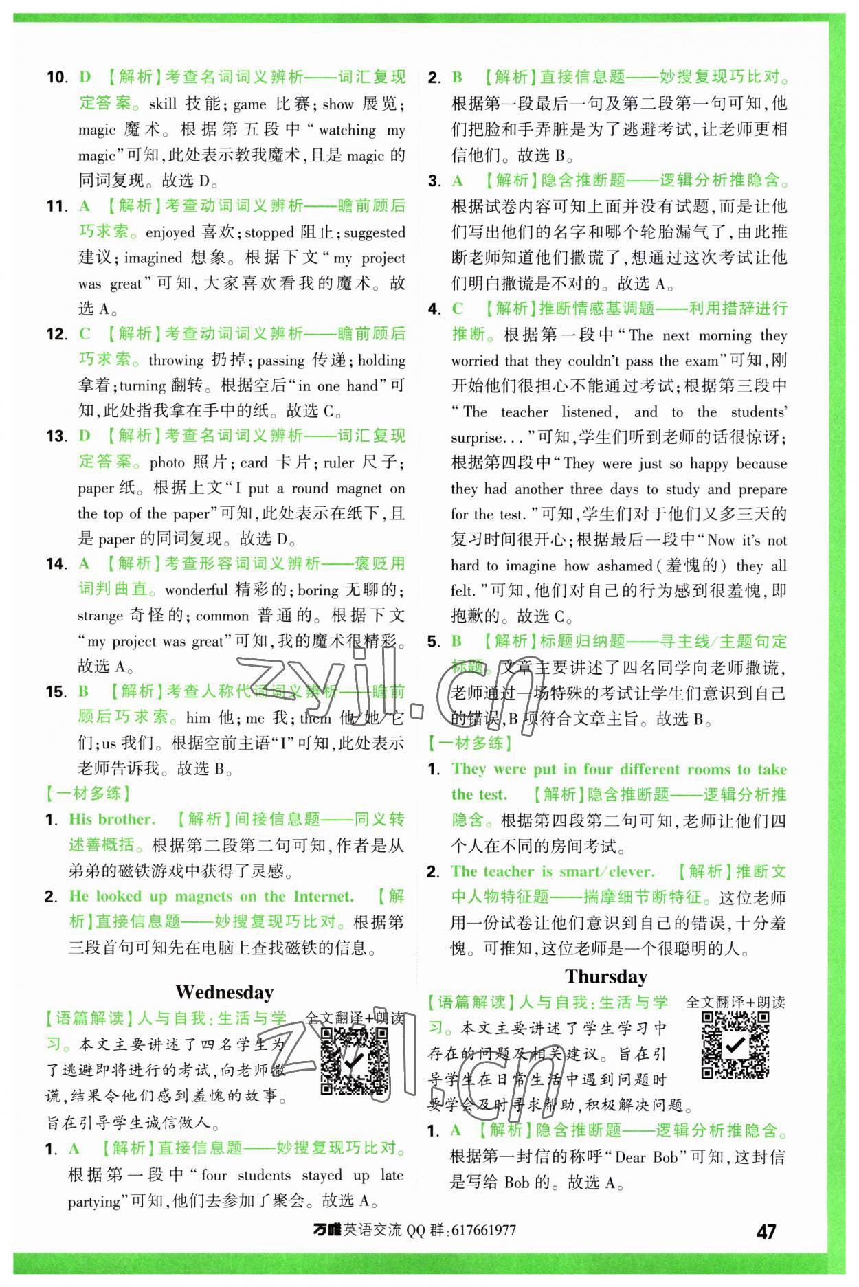 2023年万唯中考完形填空阅读理解八年级英语人教版