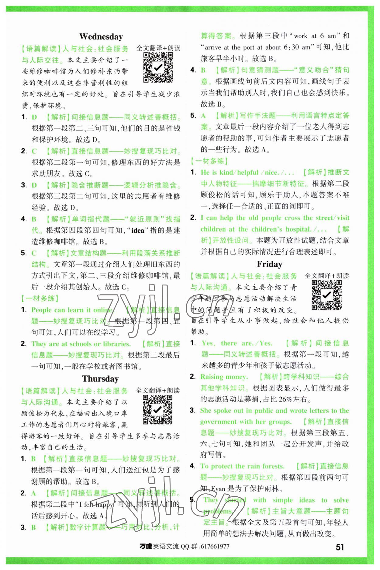 2023年万唯中考完形填空阅读理解八年级英语人教版