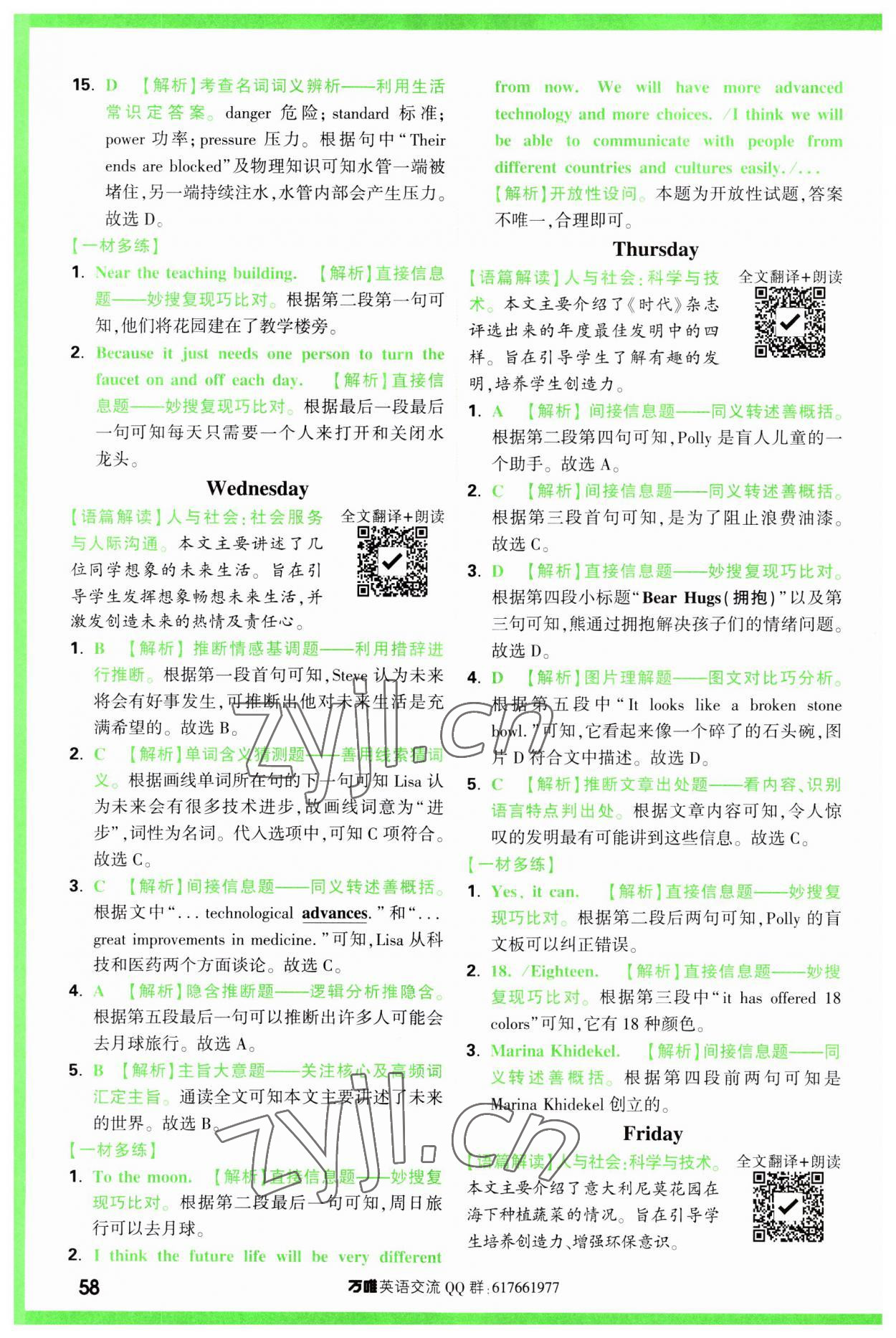 2023年万唯中考完形填空阅读理解八年级英语人教版
