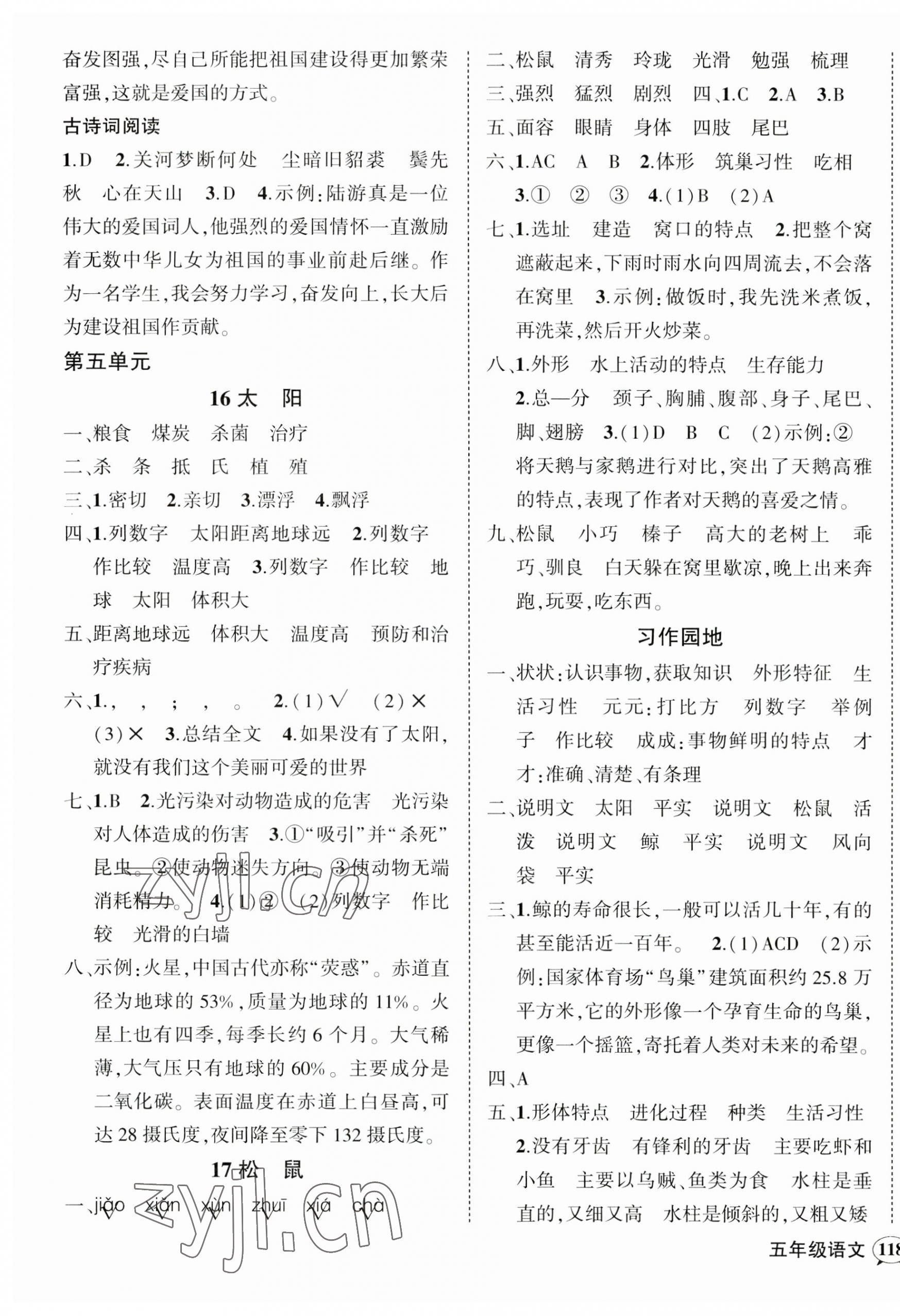 2023年状元成才路创优作业100分五年级语文上册人教版湖南专版