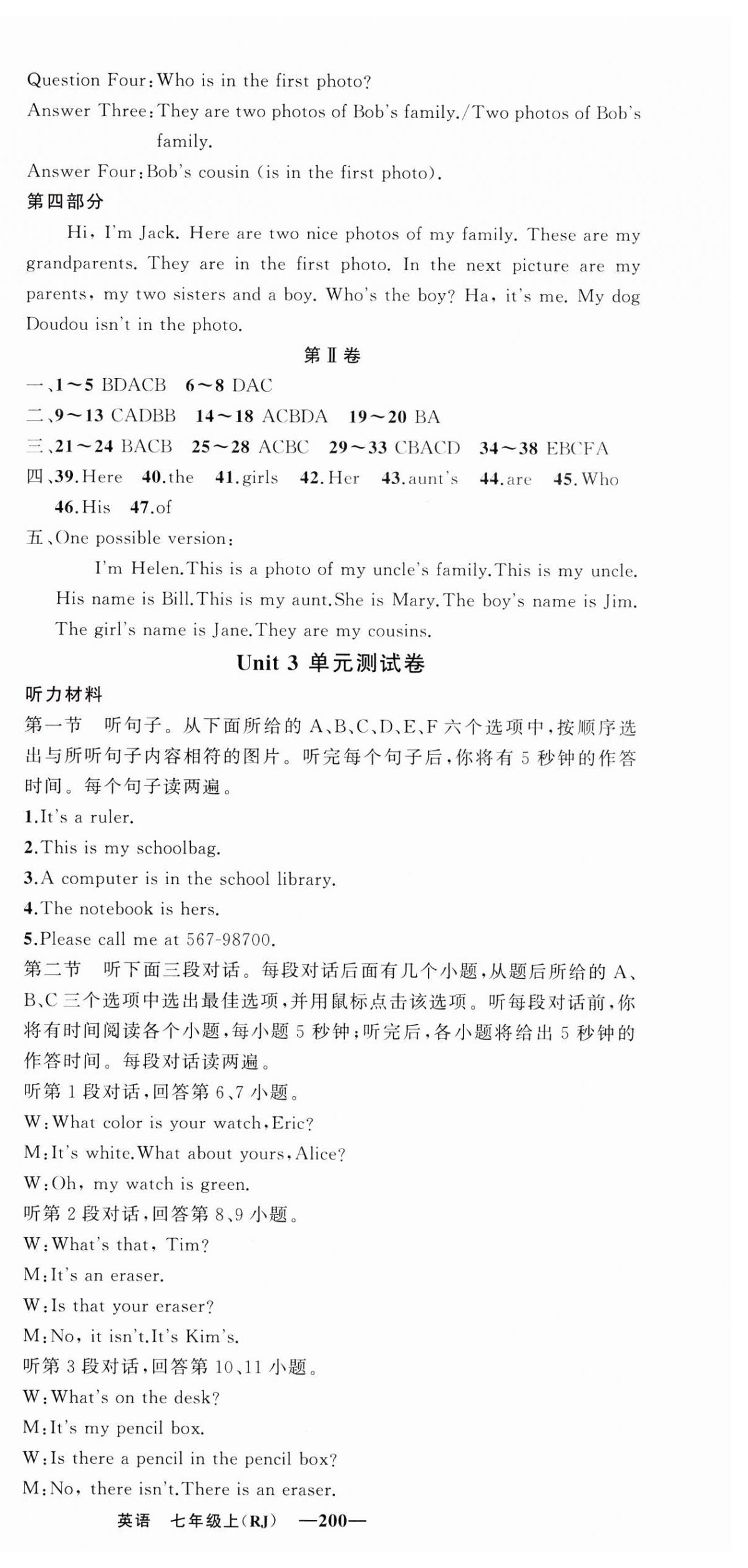 注:目前有些书本章节名称可能整理的还不是很完善,但都是按照顺序排列的,请同学们按照顺序仔细查找。练习册 2023年四清导航七年级英语上册人教版黄冈专版 答案主要是用来给同学们做完题方便对答案用的,请勿直接抄袭。