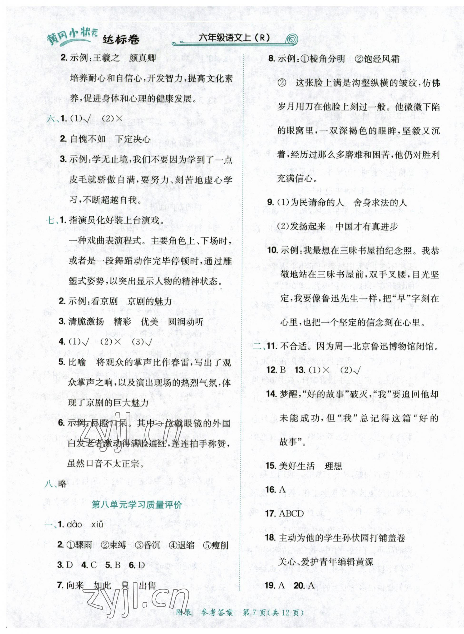 2023年黄冈小状元达标卷六年级语文上册人教版