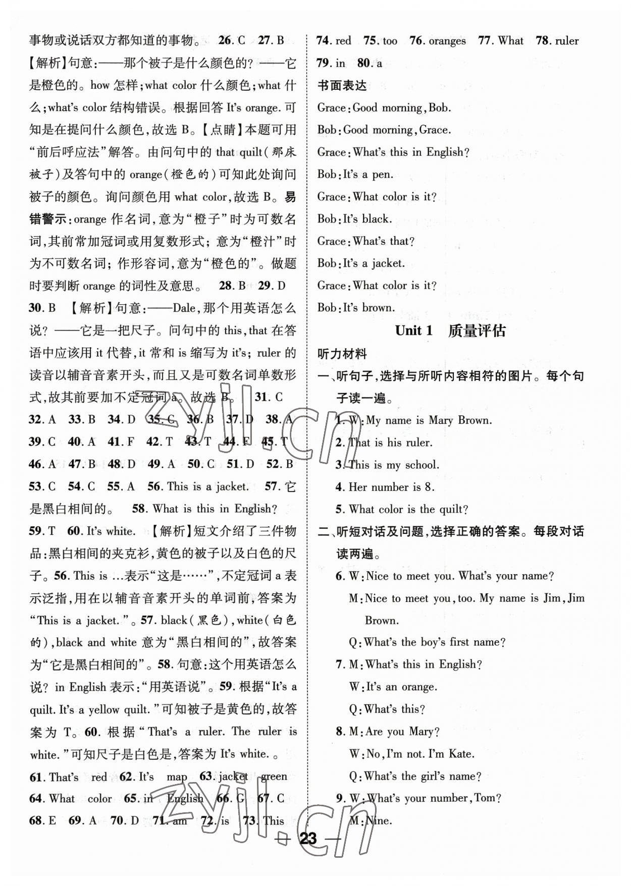 注:目前有些书本章节名称可能整理的还不是很完善,但都是按照顺序排列的,请同学们按照顺序仔细查找。练习册 2023年精英新课堂七年级英语上册人教版 答案主要是用来给同学们做完题方便对答案用的,请勿直接抄袭。