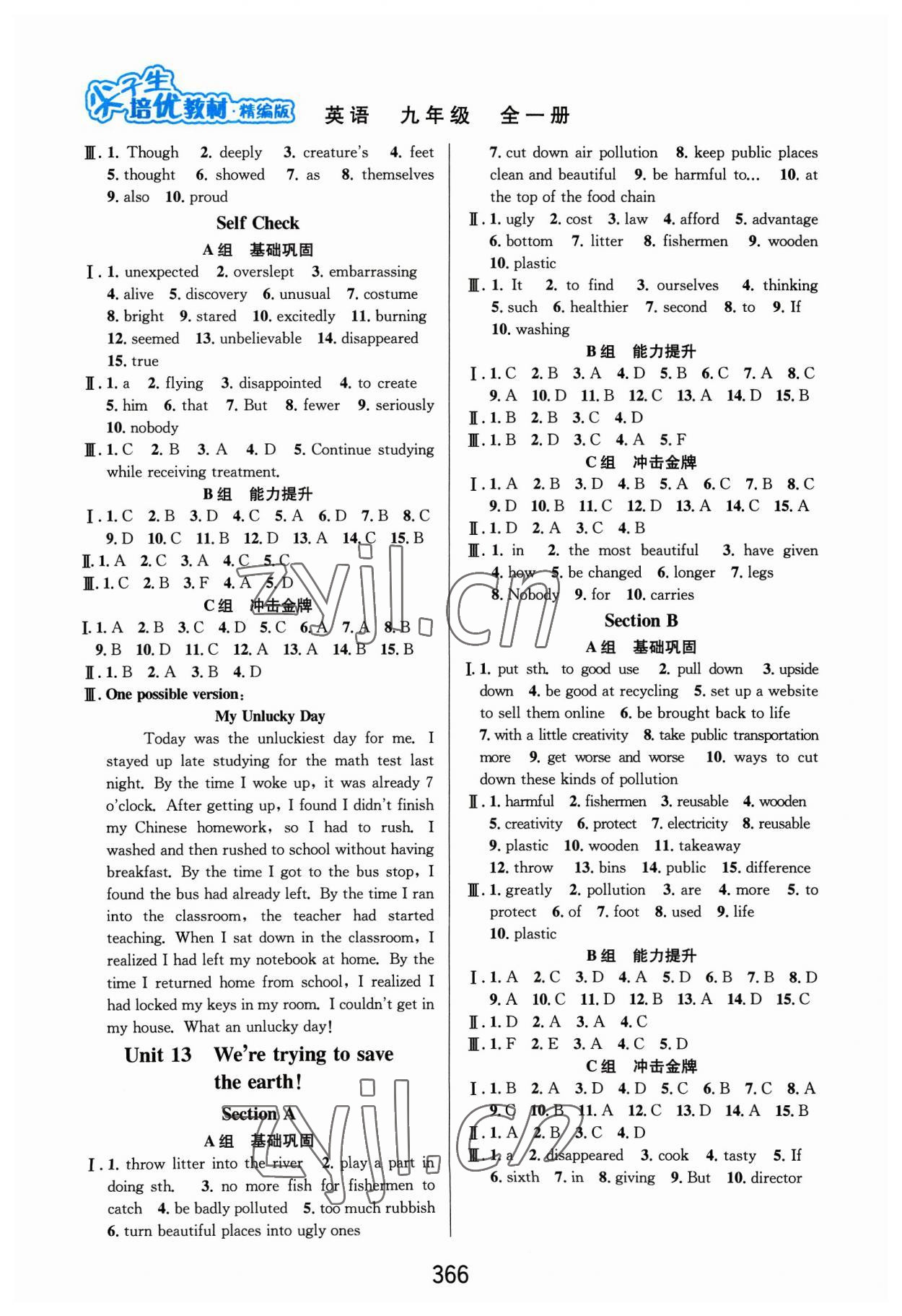 注:目前有些书本章节名称可能整理的还不是很完善,但都是按照顺序排列的,请同学们按照顺序仔细查找。练习册 2023年尖子生培优教材九年级英语全一册人教版精编版 答案主要是用来给同学们做完题方便对答案用的,请勿直接抄袭。