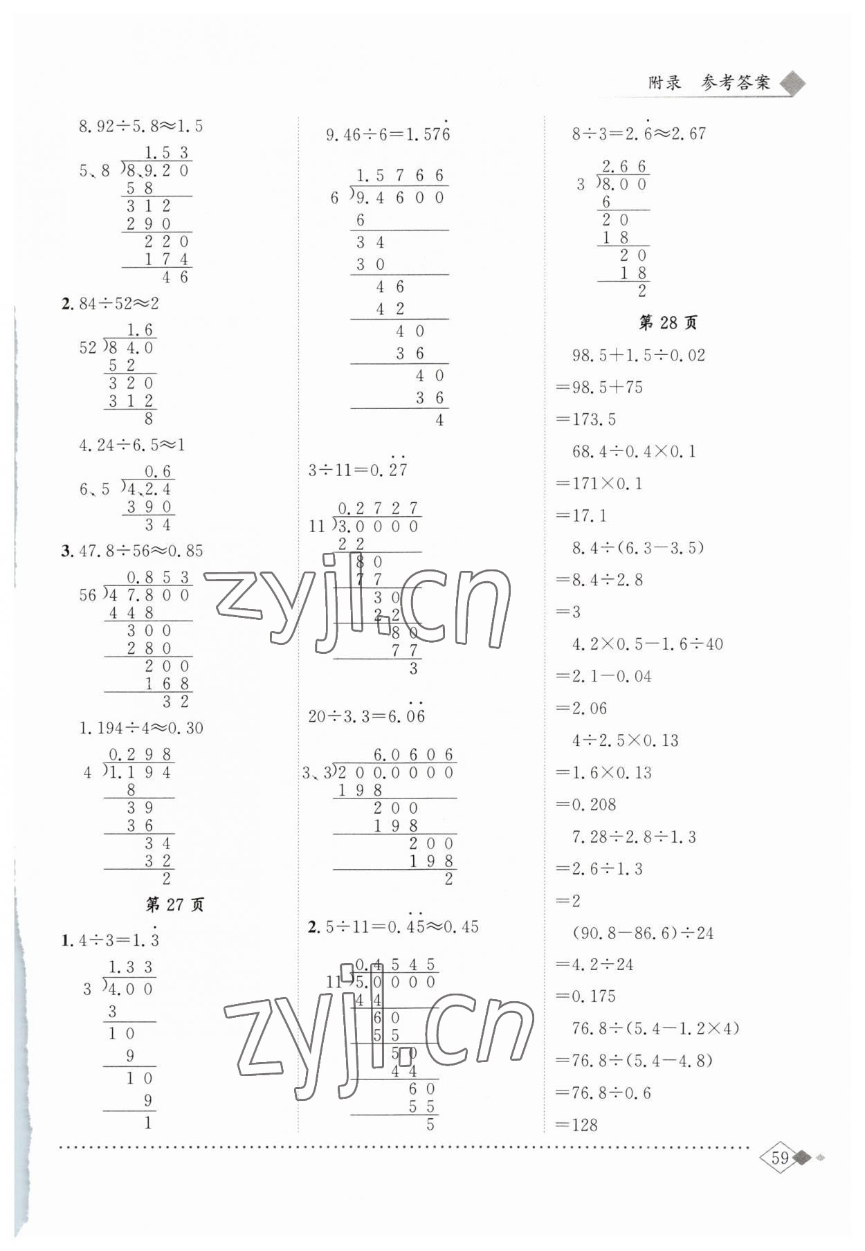 2023年黄冈小状元同步计算天天练五年级上册人教版