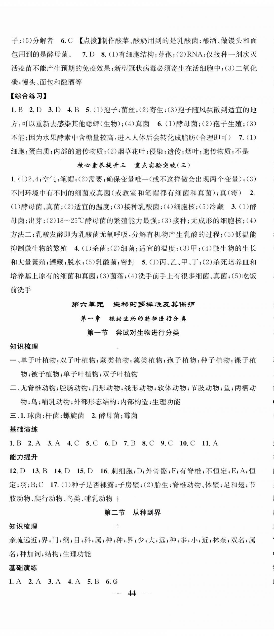 注:目前有些书本章节名称可能整理的还不是很完善,但都是按照顺序排列的,请同学们按照顺序仔细查找。练习册 2023年智慧学堂八年级生物上册人教版 答案主要是用来给同学们做完题方便对答案用的,请勿直接抄袭。