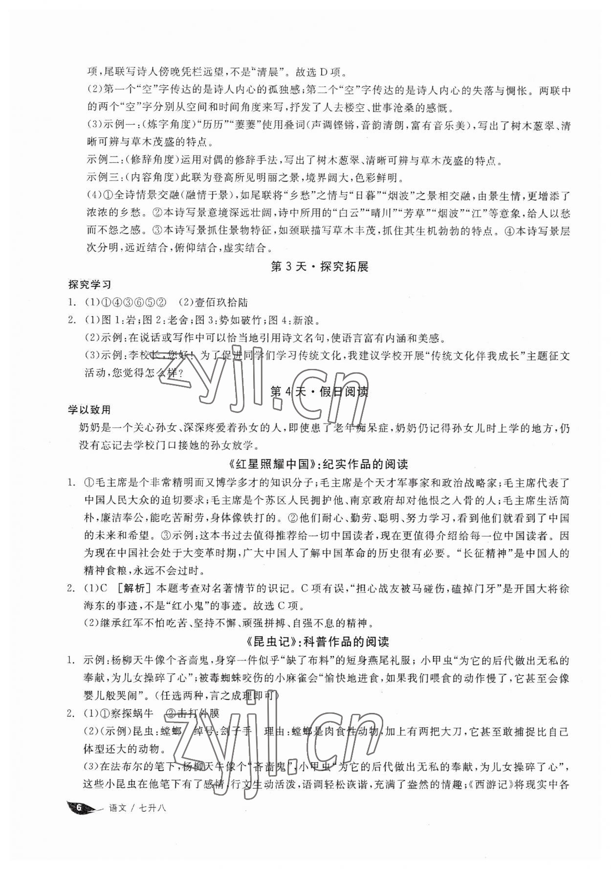 注:目前有些书本章节名称可能整理的还不是很完善,但都是按照顺序排列的,请同学们按照顺序仔细查找。练习册 2023年全品温故知新暑假阳光出版社七升八语文 答案主要是用来给同学们做完题方便对答案用的,请勿直接抄袭。