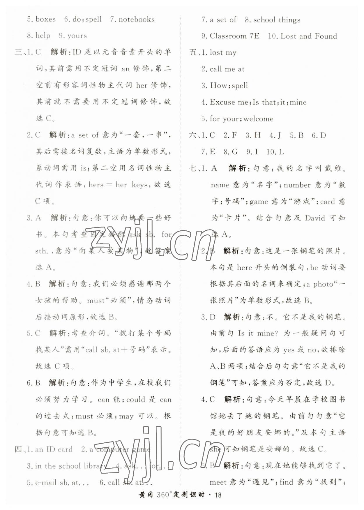 注:目前有些书本章节名称可能整理的还不是很完善,但都是按照顺序排列的,请同学们按照顺序仔细查找。练习册 2023年黄冈360定制课时七年级英语上册人教版 答案主要是用来给同学们做完题方便对答案用的,请勿直接抄袭。