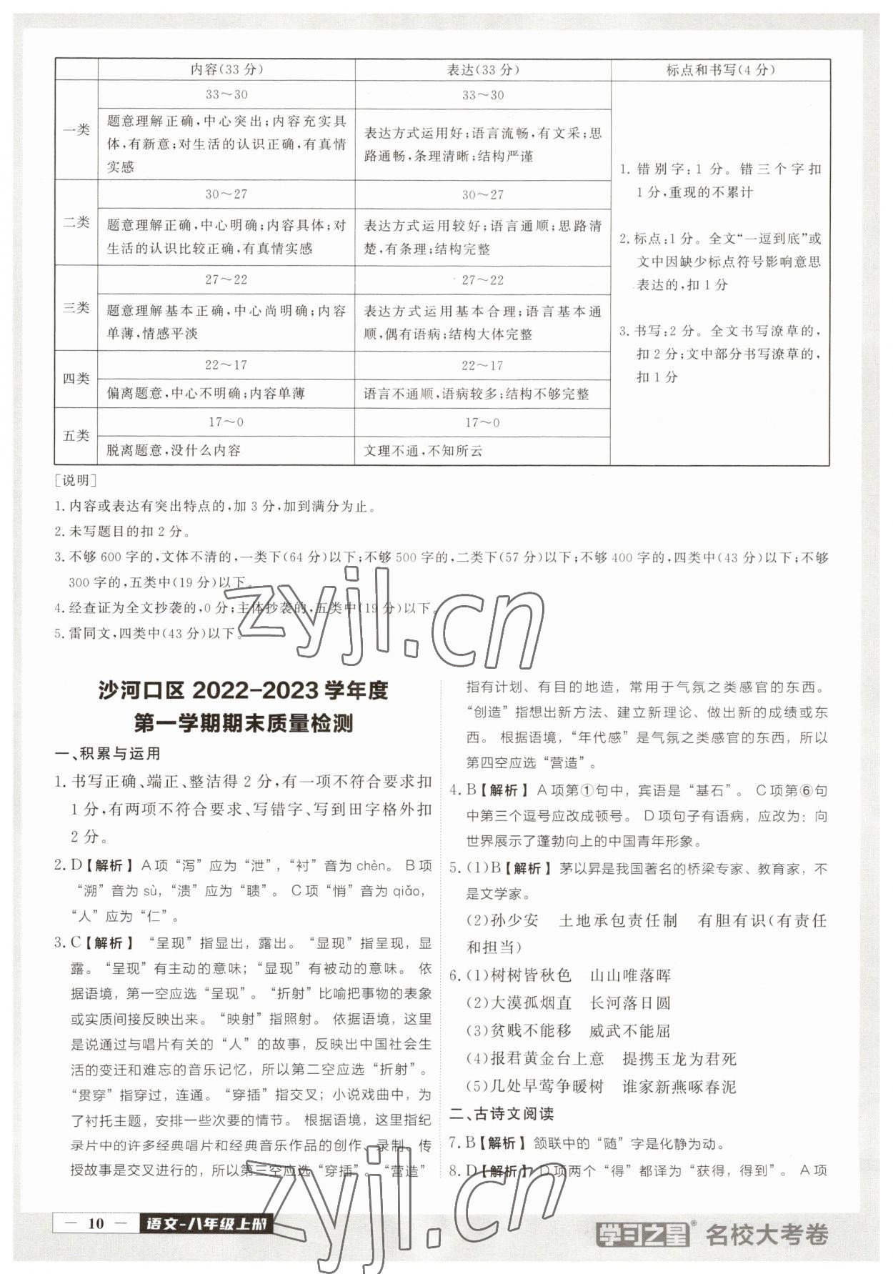 注:目前有些书本章节名称可能整理的还不是很完善,但都是按照顺序排列的,请同学们按照顺序仔细查找。练习册 2023年名校大考卷八年级语文上册人教版大连专版 答案主要是用来给同学们做完题方便对答案用的,请勿直接抄袭。
