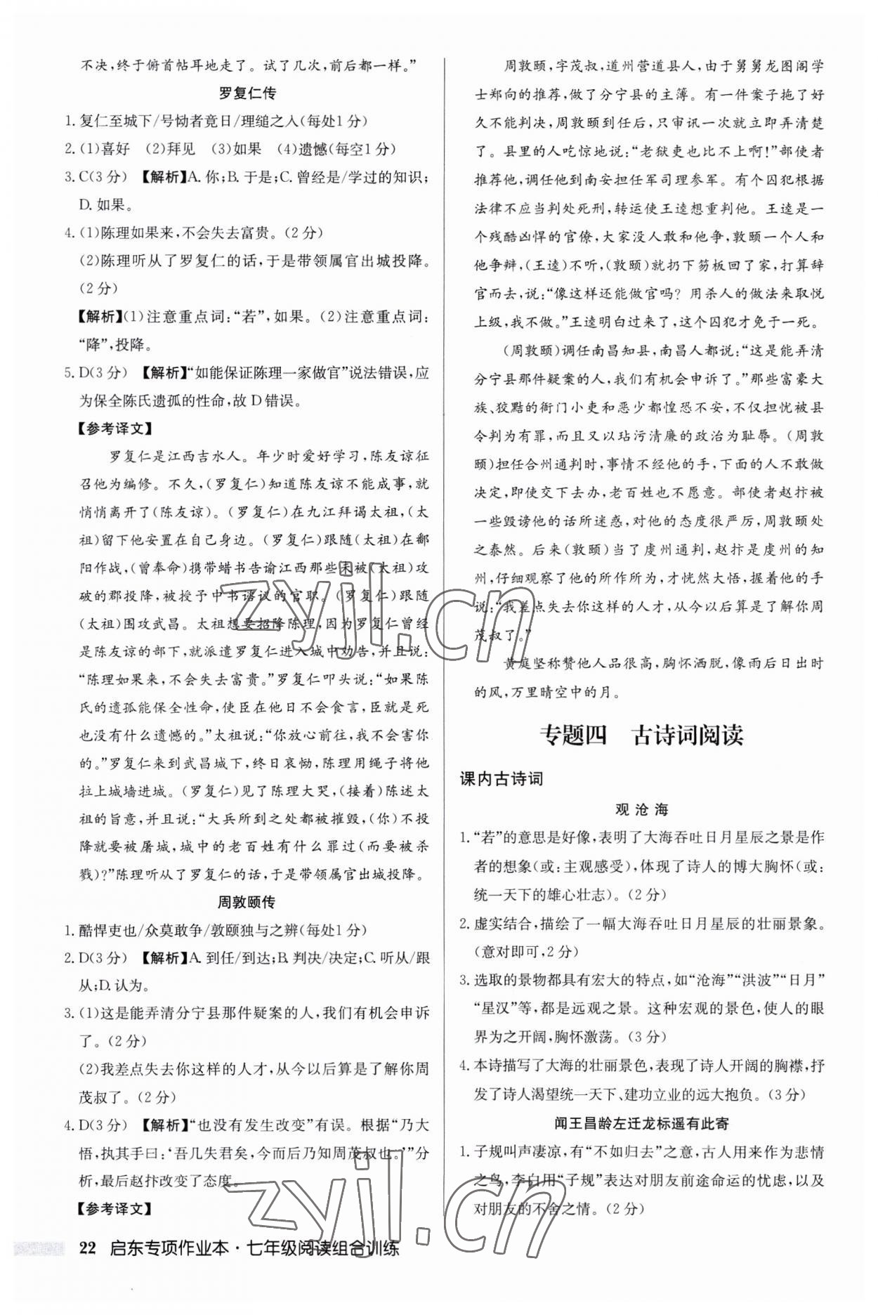 注:目前有些书本章节名称可能整理的还不是很完善,但都是按照顺序排列的,请同学们按照顺序仔细查找。练习册 2023年启东专项作业本七年级语文阅读组合训练 答案主要是用来给同学们做完题方便对答案用的,请勿直接抄袭。