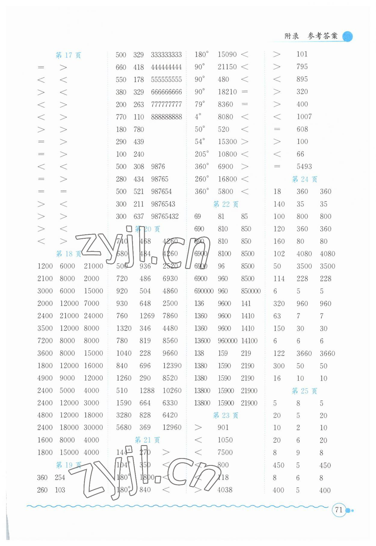 注:目前有些书本章节名称可能整理的还不是很完善,但都是按照顺序排列的,请同学们按照顺序仔细查找。练习册 2023年黄冈小状元口算速算练习册四年级数学上册北师大版 答案主要是用来给同学们做完题方便对答案用的,请勿直接抄袭。