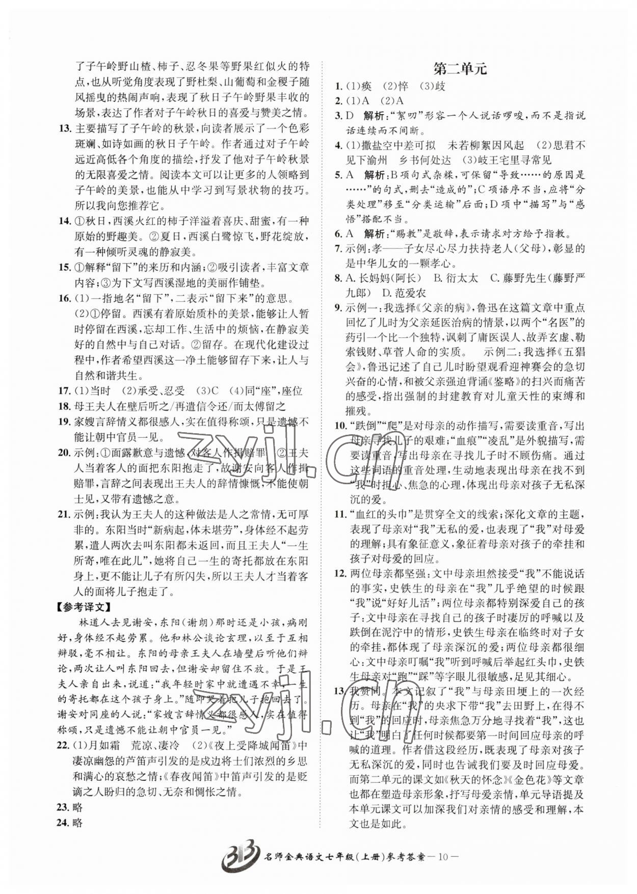 注:目前有些书本章节名称可能整理的还不是很完善,但都是按照顺序排列的,请同学们按照顺序仔细查找。练习册 2023年名师金典BFB初中课时优化七年级语文上册人教版 答案主要是用来给同学们做完题方便对答案用的,请勿直接抄袭。
