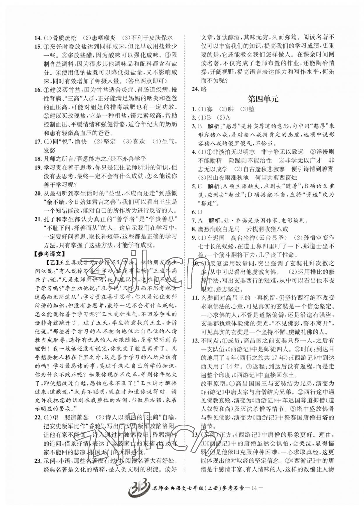 注:目前有些书本章节名称可能整理的还不是很完善,但都是按照顺序排列的,请同学们按照顺序仔细查找。练习册 2023年名师金典BFB初中课时优化七年级语文上册人教版 答案主要是用来给同学们做完题方便对答案用的,请勿直接抄袭。