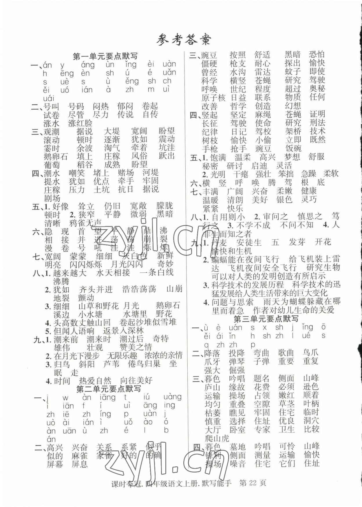 注:目前有些书本章节名称可能整理的还不是很完善,但都是按照顺序排列的,请同学们按照顺序仔细查找。练习册 2023年课时夺冠四年级语文上册人教版 答案主要是用来给同学们做完题方便对答案用的,请勿直接抄袭。