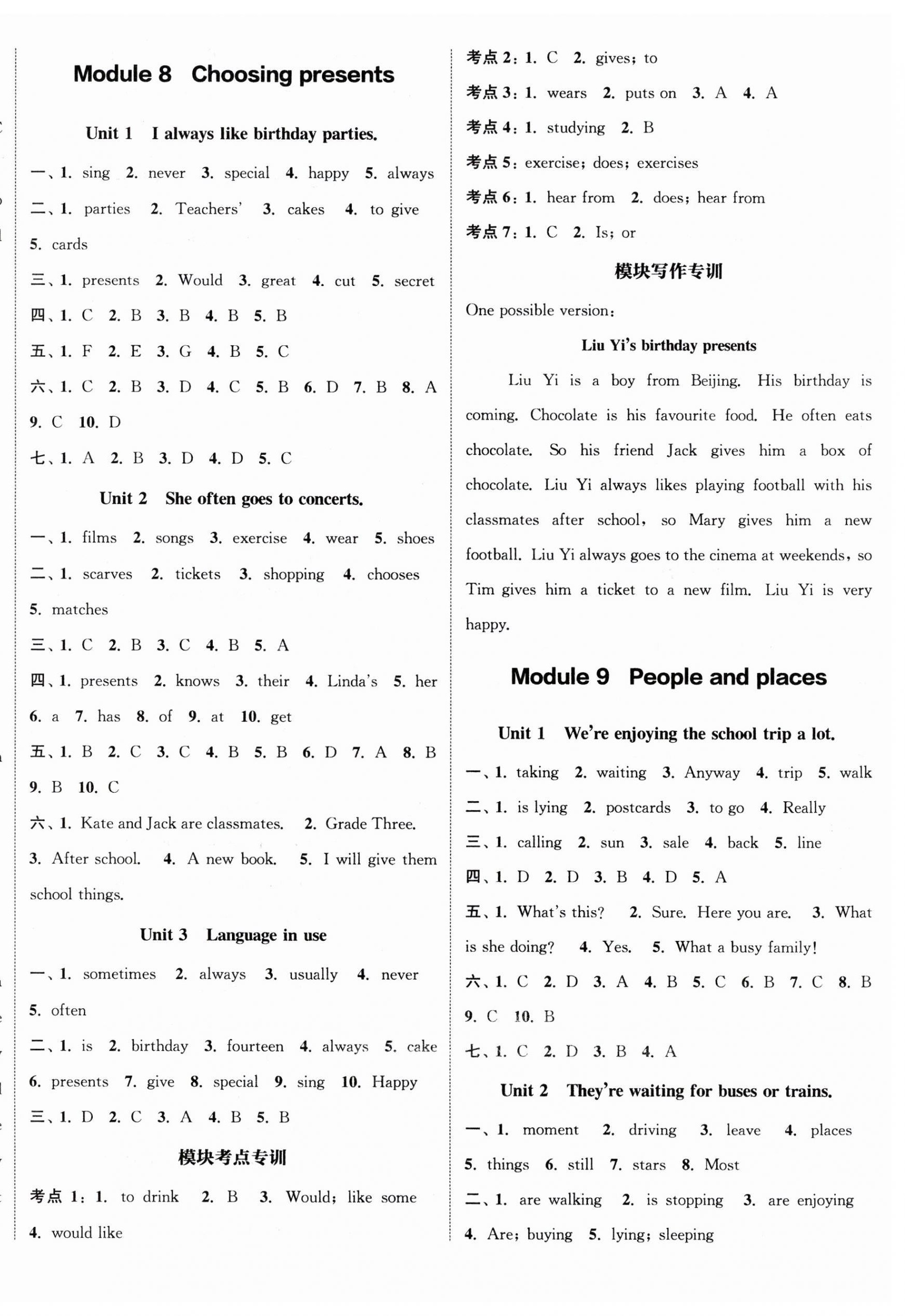 注:目前有些书本章节名称可能整理的还不是很完善,但都是按照顺序排列的,请同学们按照顺序仔细查找。练习册 2023年通城学典课时作业本七年级英语上册外研版 答案主要是用来给同学们做完题方便对答案用的,请勿直接抄袭。