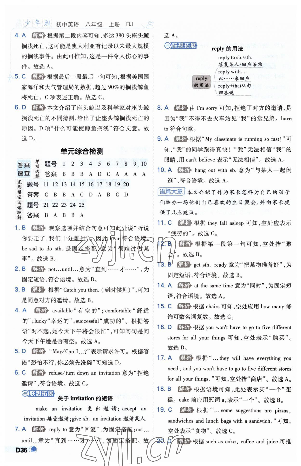 注:目前有些书本章节名称可能整理的还不是很完善,但都是按照顺序排列的,请同学们按照顺序仔细查找。练习册 2023年少年班初中英语八年级上册人教版 答案主要是用来给同学们做完题方便对答案用的,请勿直接抄袭。