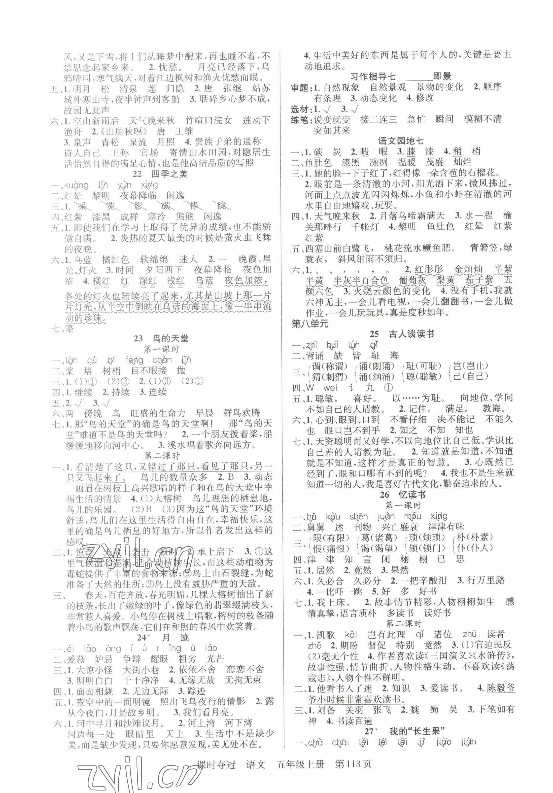 《2023年课时夺冠五年级语文上册人教版》