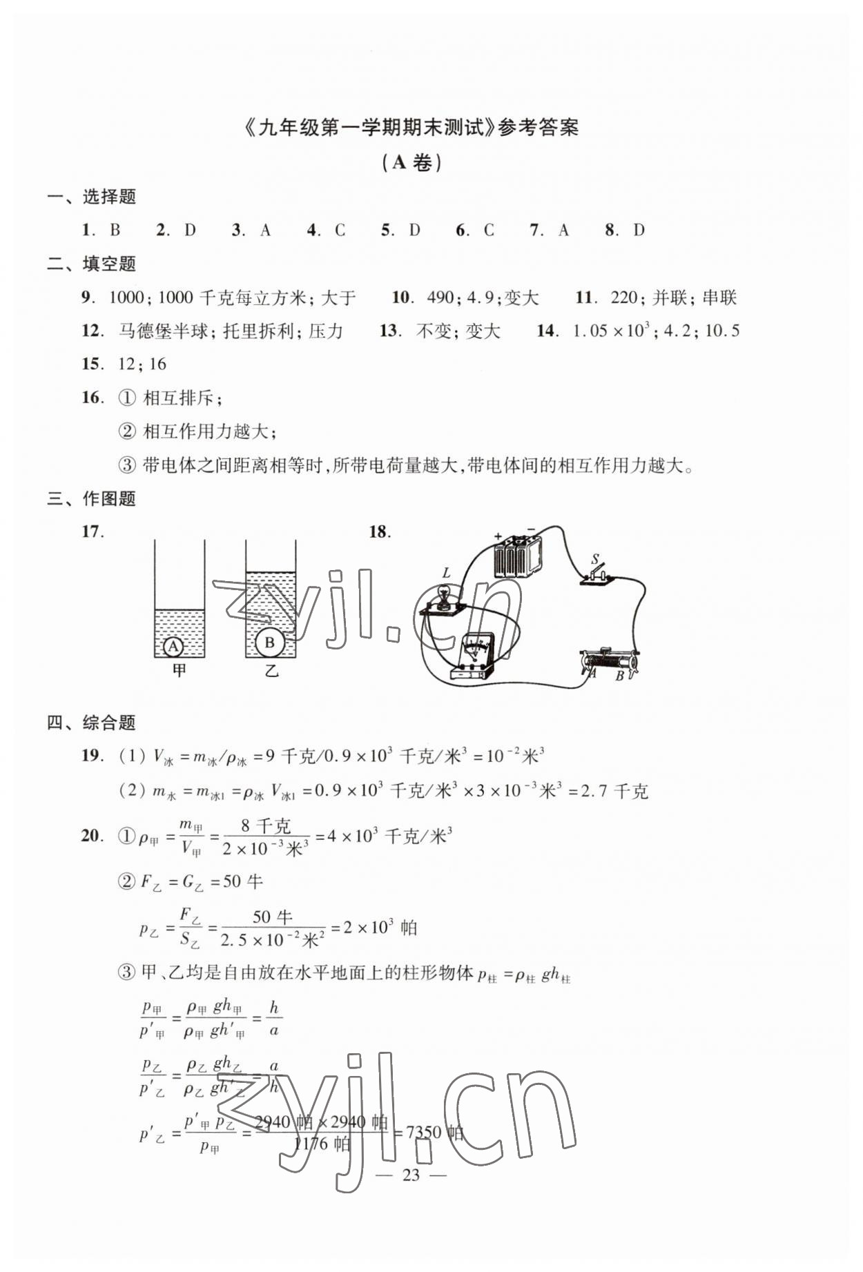 注:目前有些书本章节名称可能整理的还不是很完善,但都是按照顺序排列的,请同学们按照顺序仔细查找。练习册 2023年初三年级物理试卷汇编 答案主要是用来给同学们做完题方便对答案用的,请勿直接抄袭。