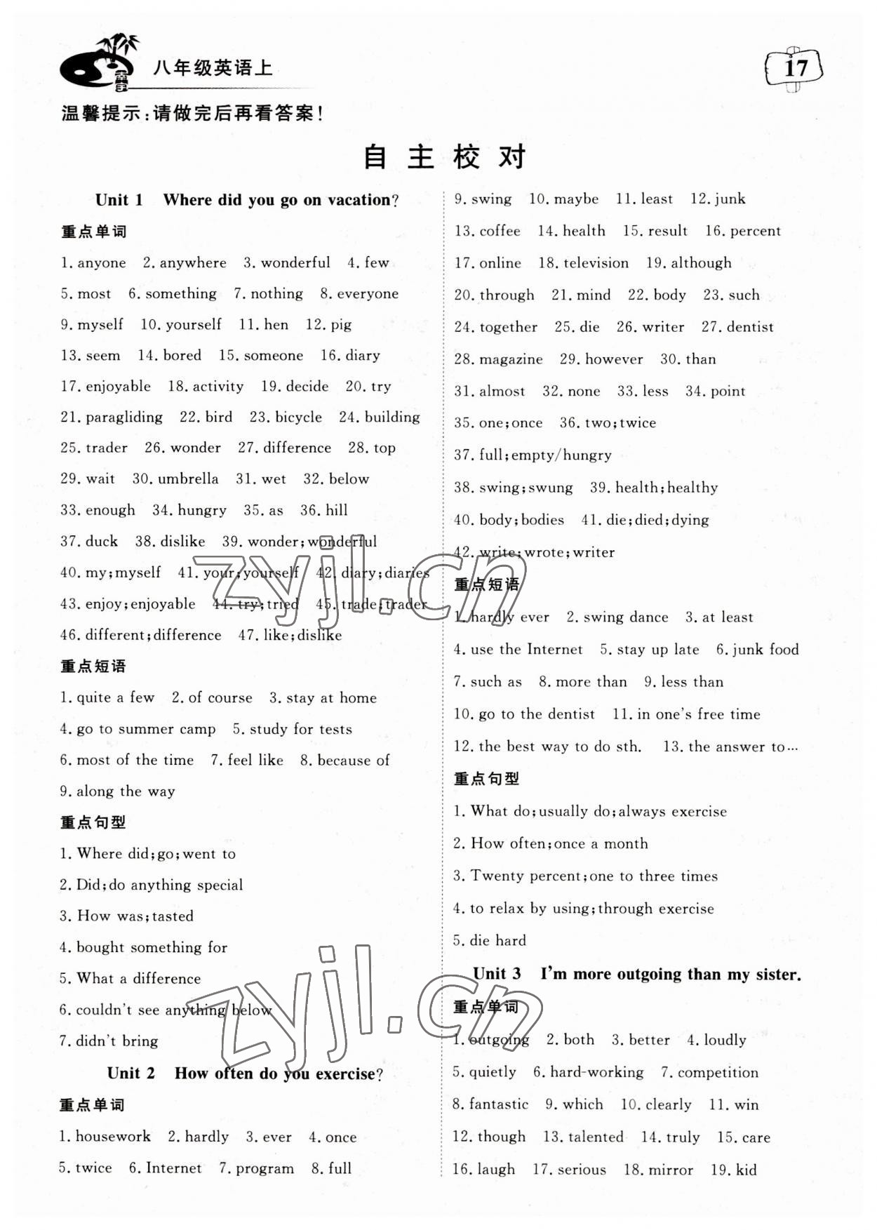 注:目前有些书本章节名称可能整理的还不是很完善,但都是按照顺序排列的,请同学们按照顺序仔细查找。练习册 2023年351高效课堂导学案八年级英语上册人教版 答案主要是用来给同学们做完题方便对答案用的,请勿直接抄袭。