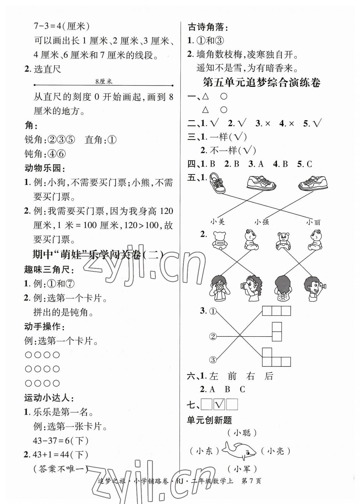 注:目前有些书本章节名称可能整理的还不是很完善,但都是按照顺序排列的,请同学们按照顺序仔细查找。练习册 2023年追梦之旅铺路卷二年级数学上册人教版河南专版 答案主要是用来给同学们做完题方便对答案用的,请勿直接抄袭。