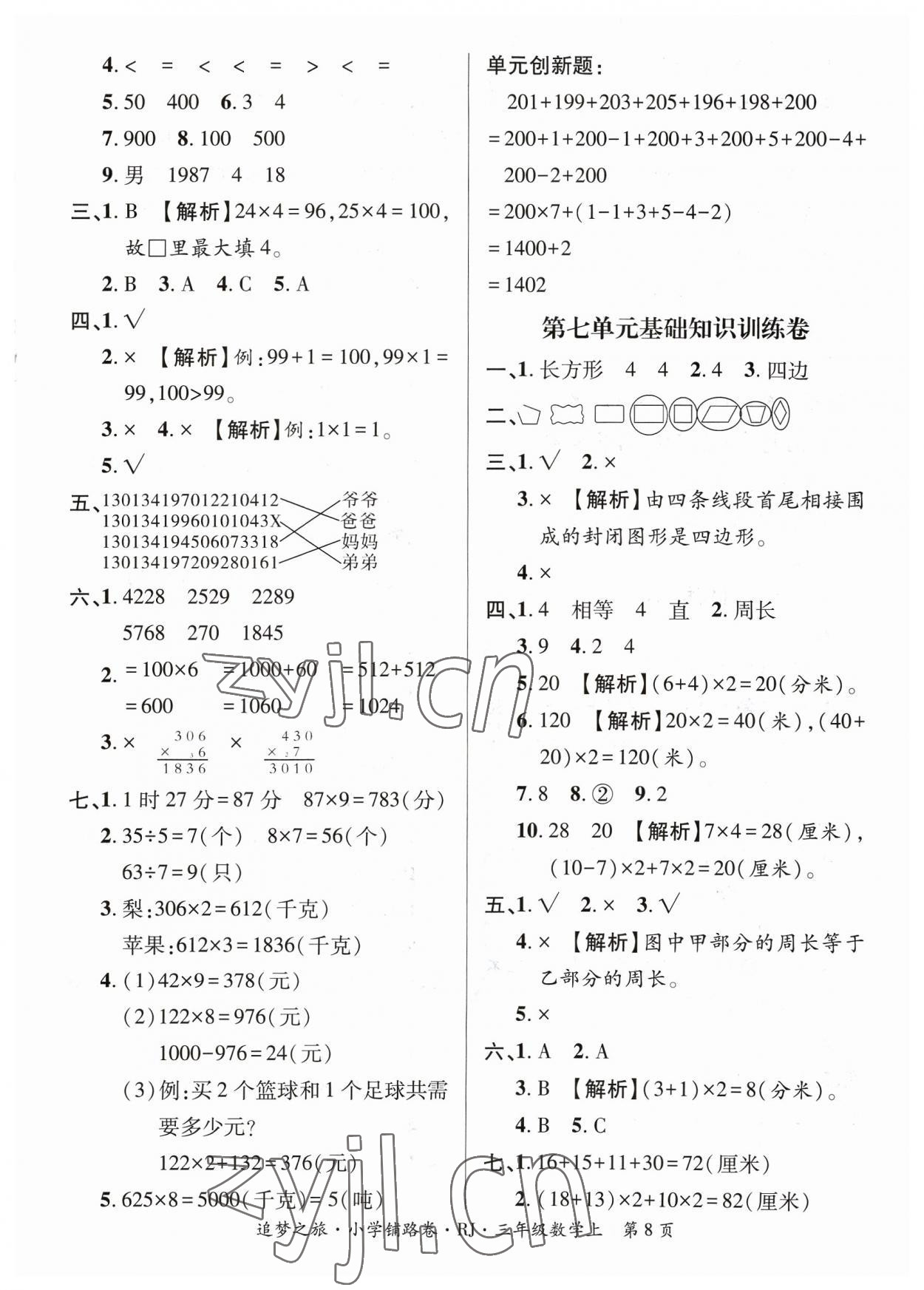 2023年追梦之旅铺路卷三年级数学上册人教版河南专版