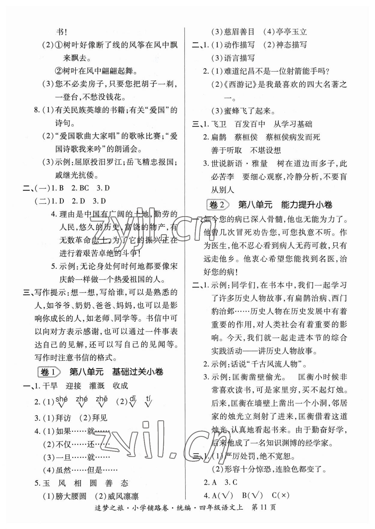 2023年追梦之旅铺路卷四年级语文上册人教版河南专版